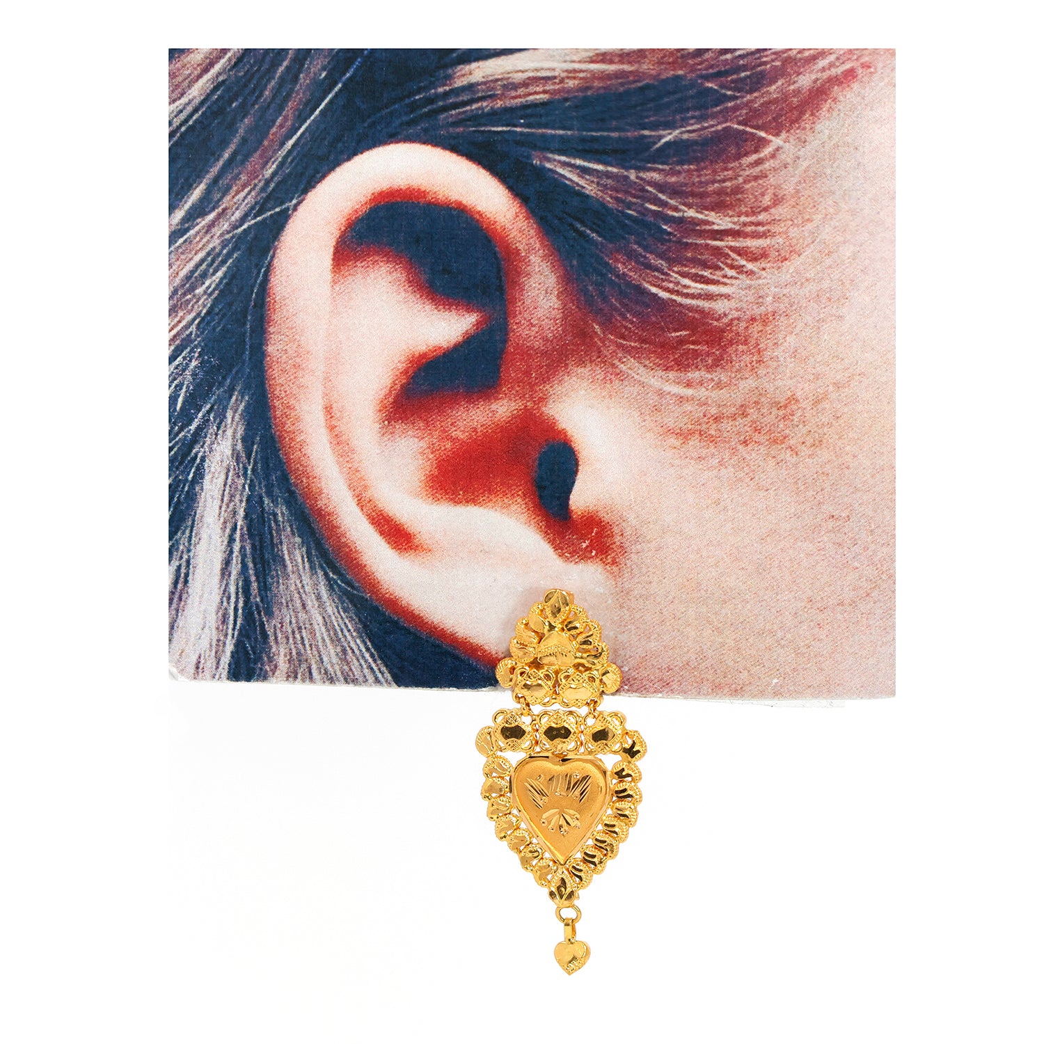 22K Gold Earrings – Ornate Heart Drop with Mini Charm – Zero Making Charge