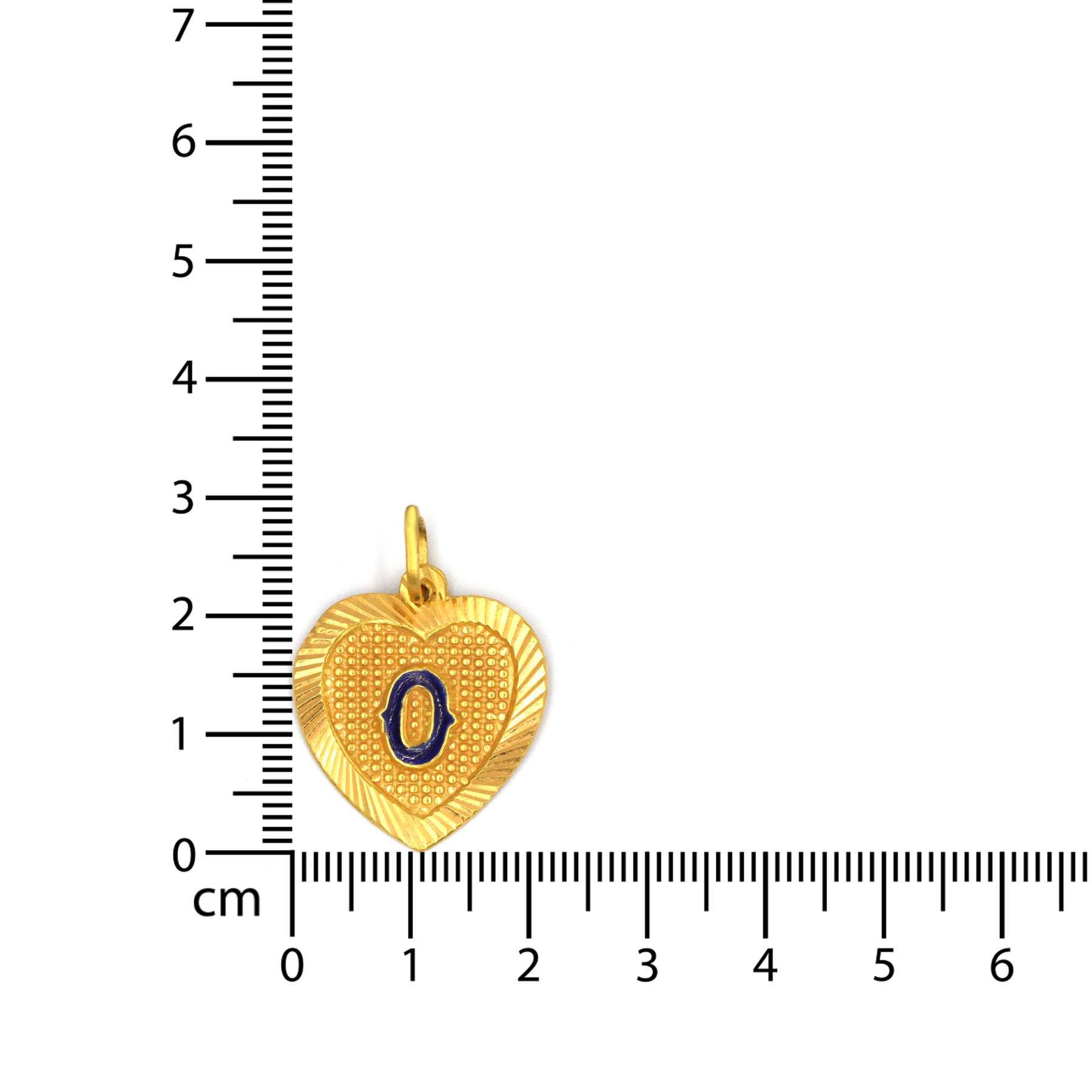 22K Gold Heart Pendant Blue Enamel "Q" | Zero Making Charge - Buy Now