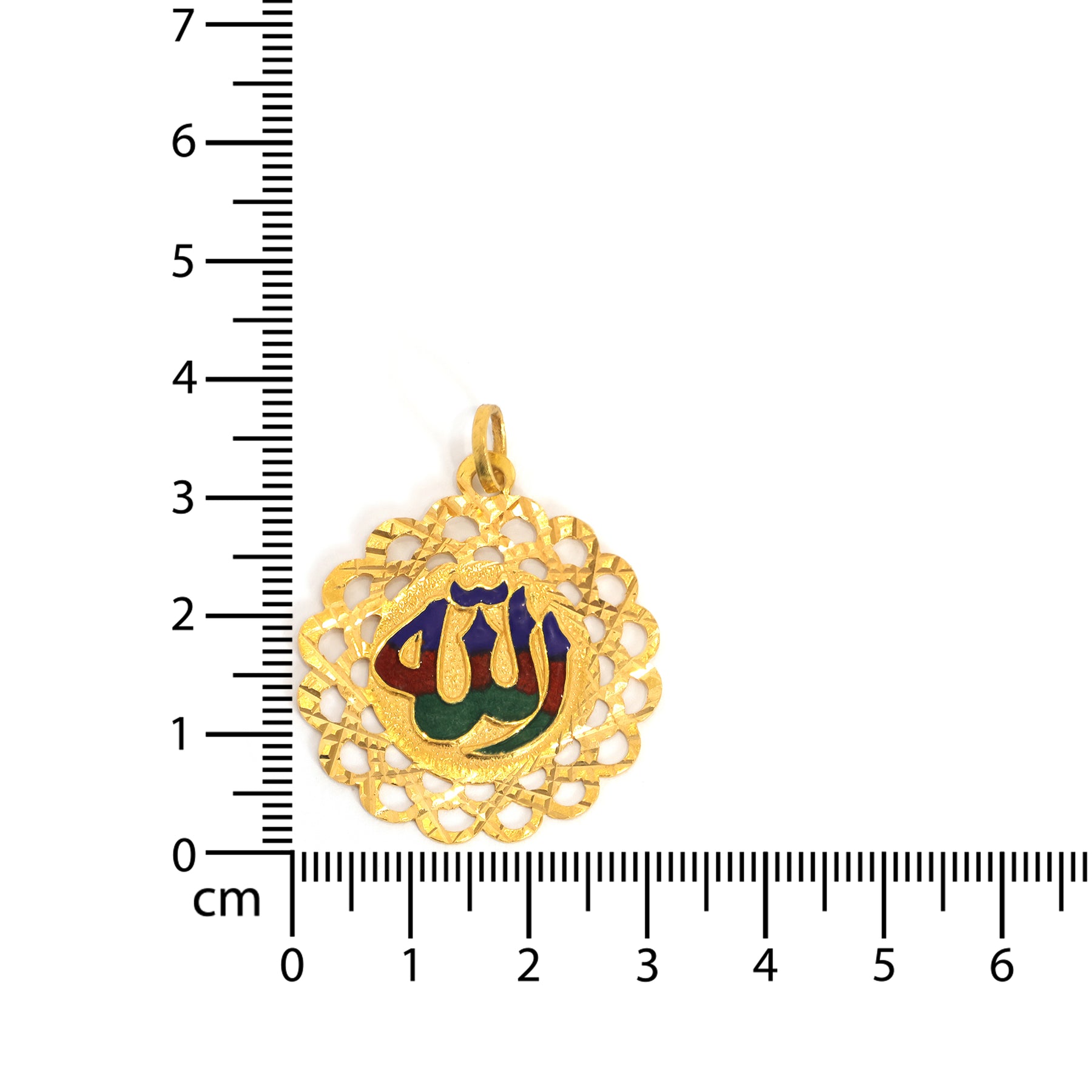 AFP0476022K Gold Pendants – Allah Name with Colorful Enamel Calligraphy – Zero Making Charge