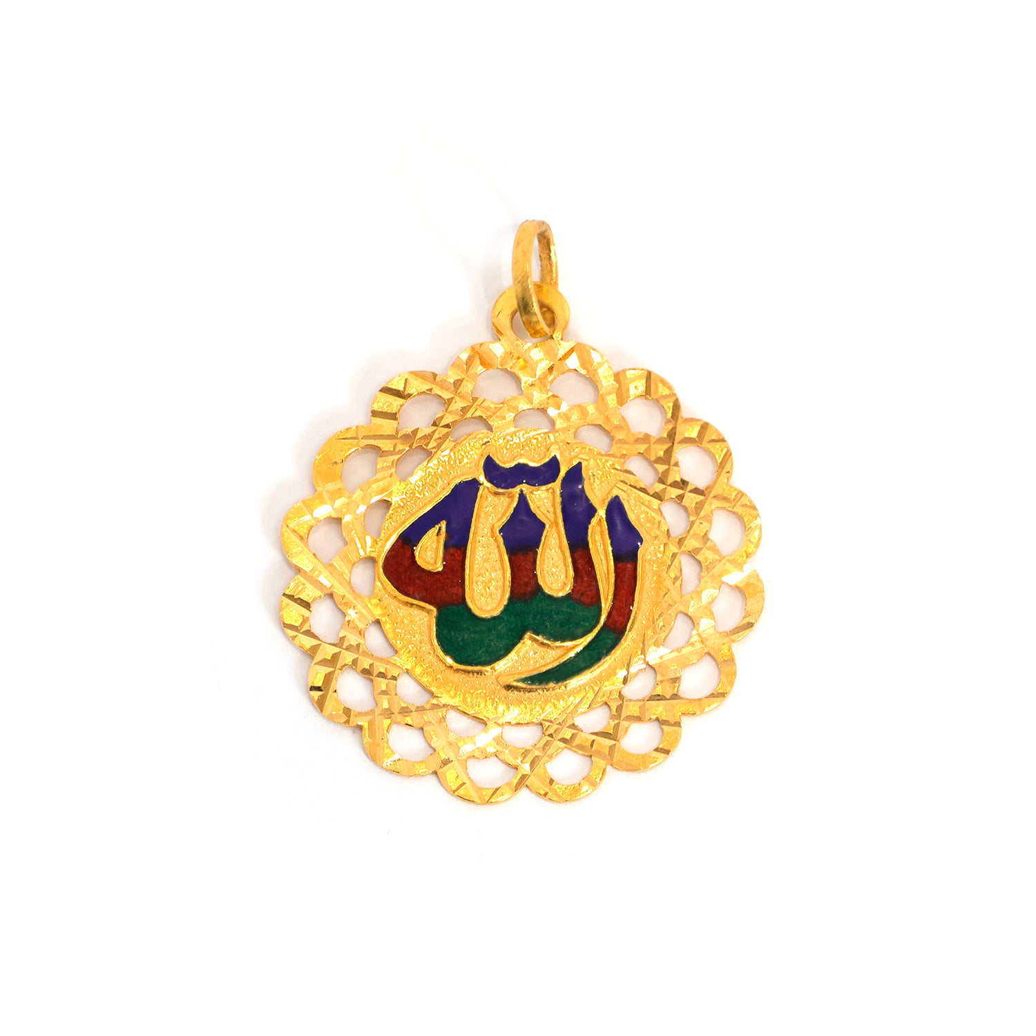 22K Gold Pendants – Allah Name with Colorful Enamel Calligraphy – Zero Making Charge