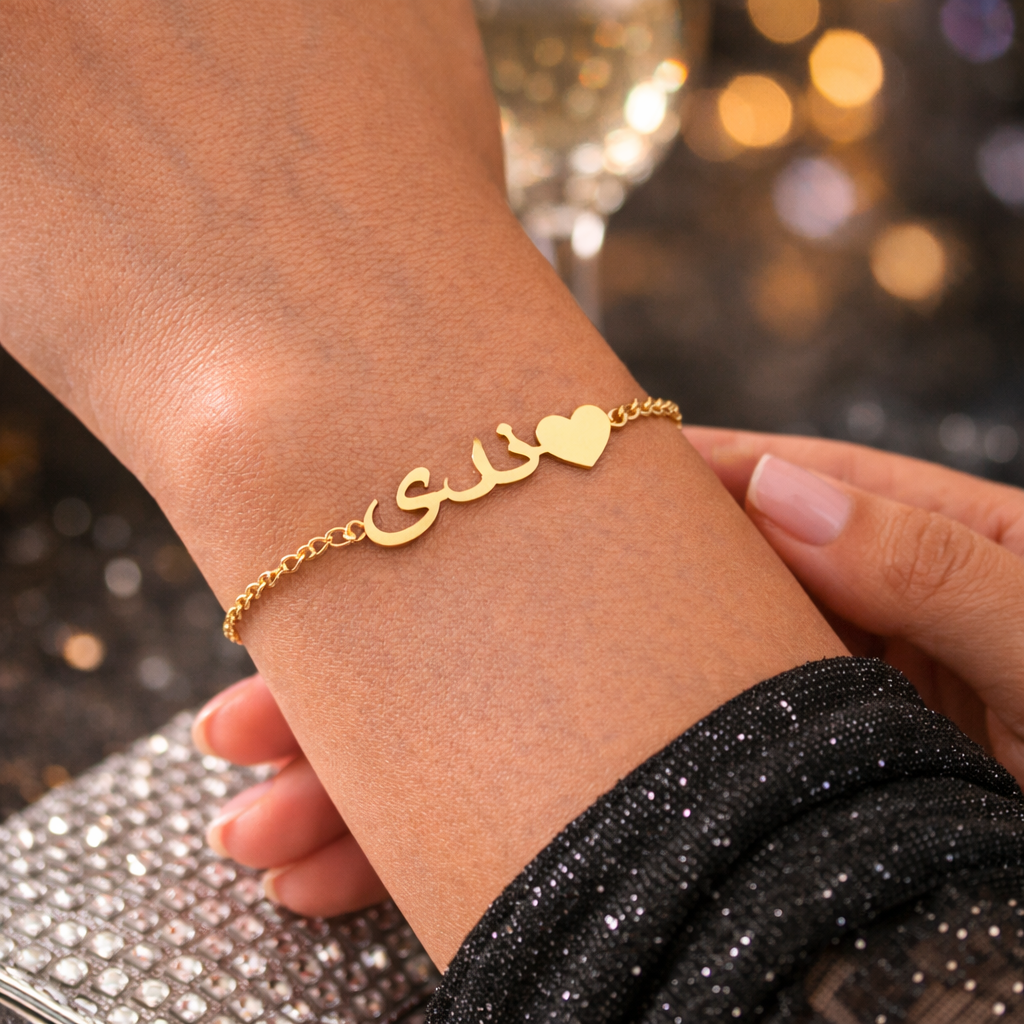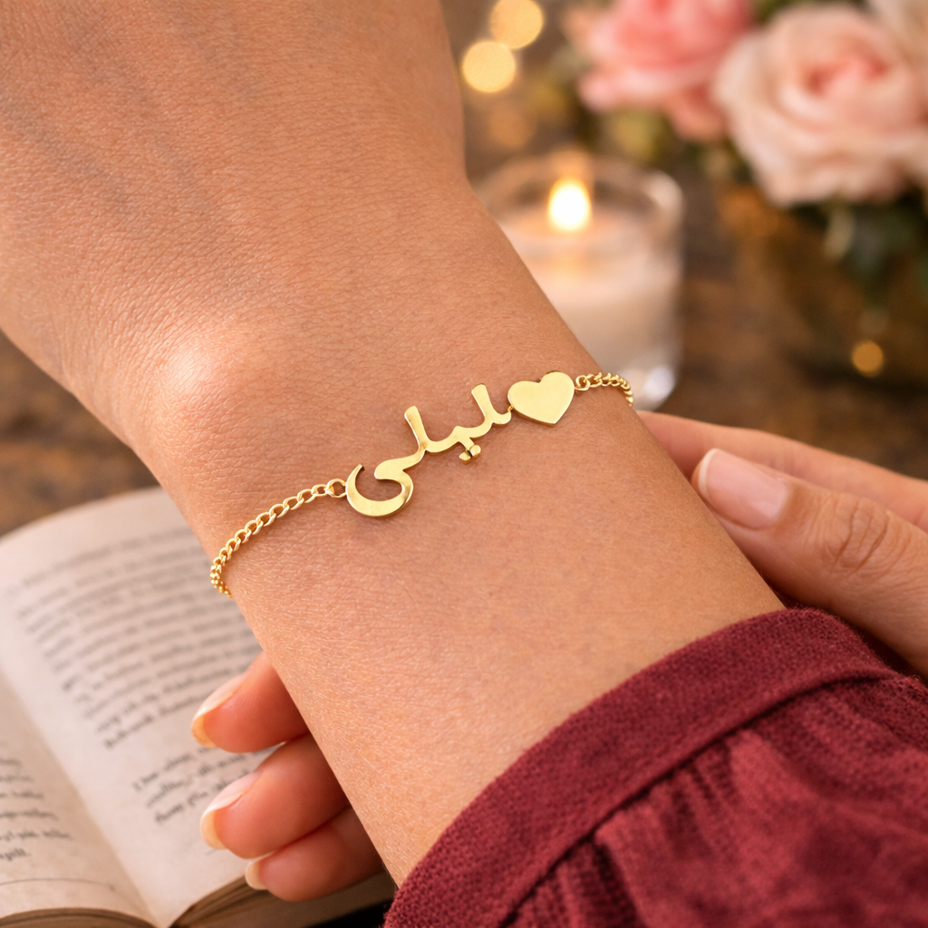 The heart symbolizes love, care, and connection. Paired with elegant Arabic script, this bracelet becomes a meaningful personal piece—perfect for daily wear or gifting.