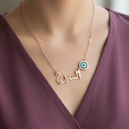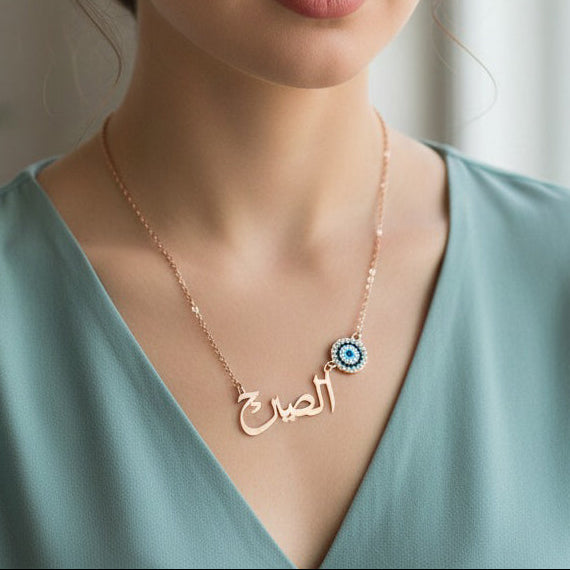 Arabic+Evileye18K Arabic Name Necklace with Evil Eye – 2g