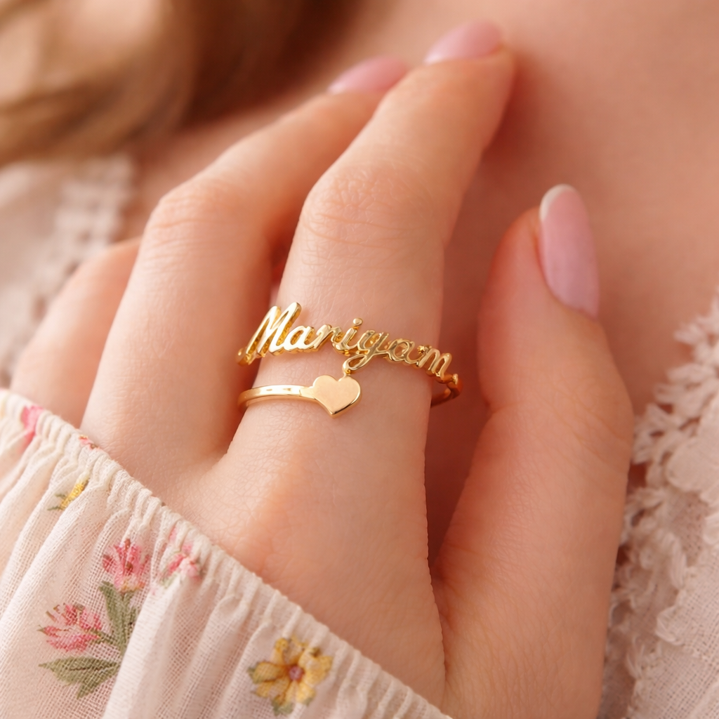 This 18K adjustable name ring is designed and manufactured in Dubai using precision cutting and fine finishing. Each ring is custom-made from genuine 18K gold to ensure clean lettering, smooth edges, and a high-polish shine. Not mass-produced — made exclusively for you.