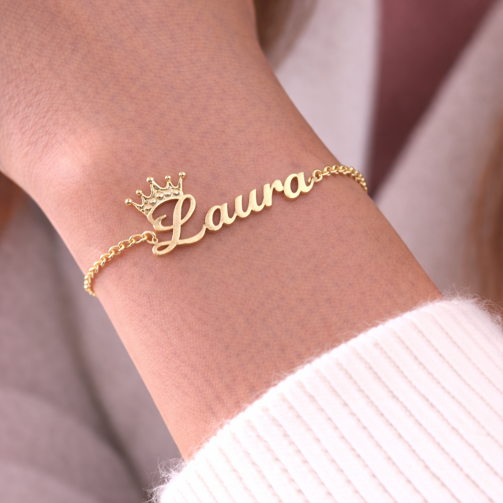 The crown symbolizes confidence, strength, and self-worth. Combined with your name, it becomes a statement bracelet—perfect for daily wear or as a meaningful gift.
