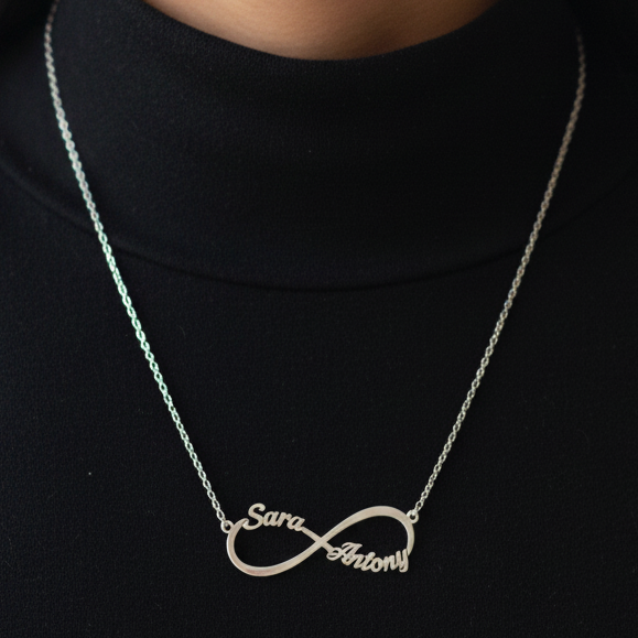 This infinity name necklace makes a thoughtful gift for anniversaries, birthdays, couples, or meaningful everyday wear. Its timeless design and personal touch make it suitable for all ages.