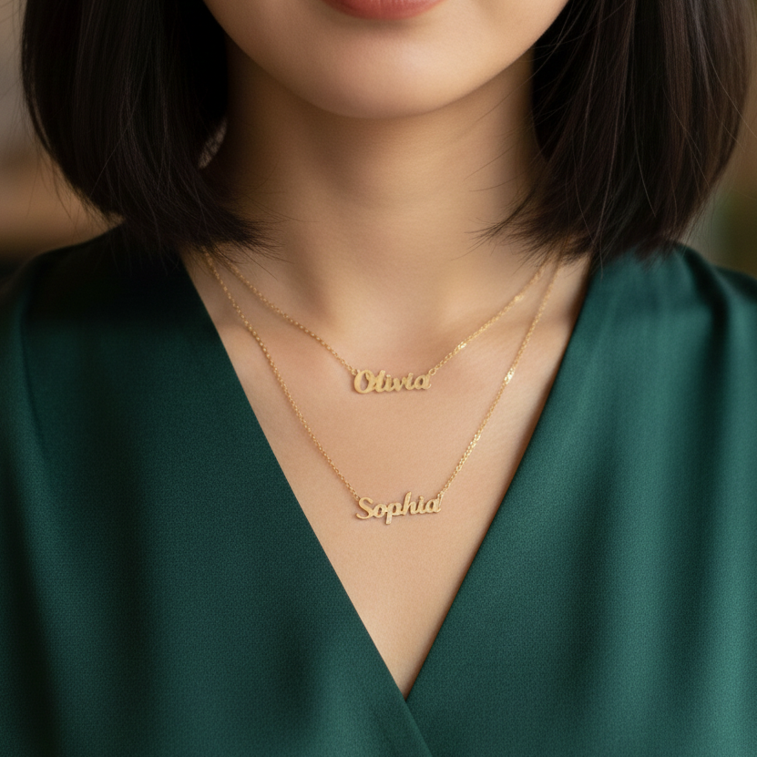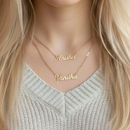 This necklace is carefully balanced at approximately 3.5 grams of 18K gold. The weight ensures durability, clear name visibility, and long-lasting shine without feeling heavy.