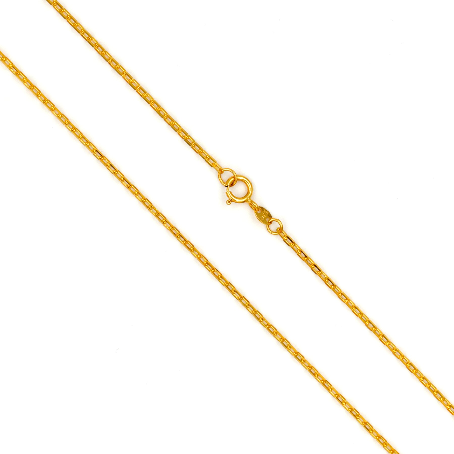 Make a bold contemporary statement with this exceptional 21K gold cube link chain that fuses modern geometric design with superior gold purity. Featuring distinctive three-dimensional cube-shaped links crafted from premium 87.5% pure gold, this innovative chain delivers architectural elegance and investment-grade quality in a design that's refreshingly modern yet timelessly sophisticated.