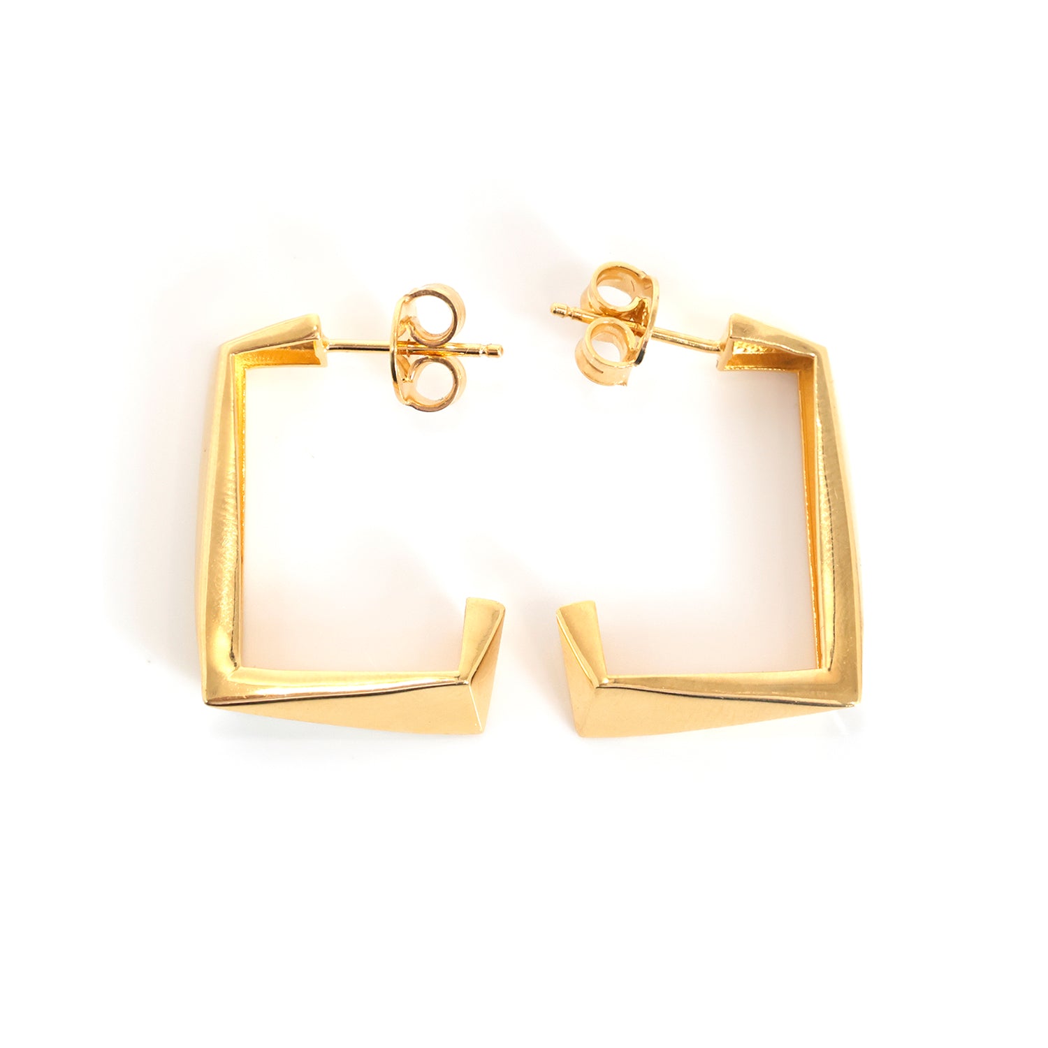 18K Gold Earrings – angular open-square hoop profile with sharp, clean corners – Buy Now
