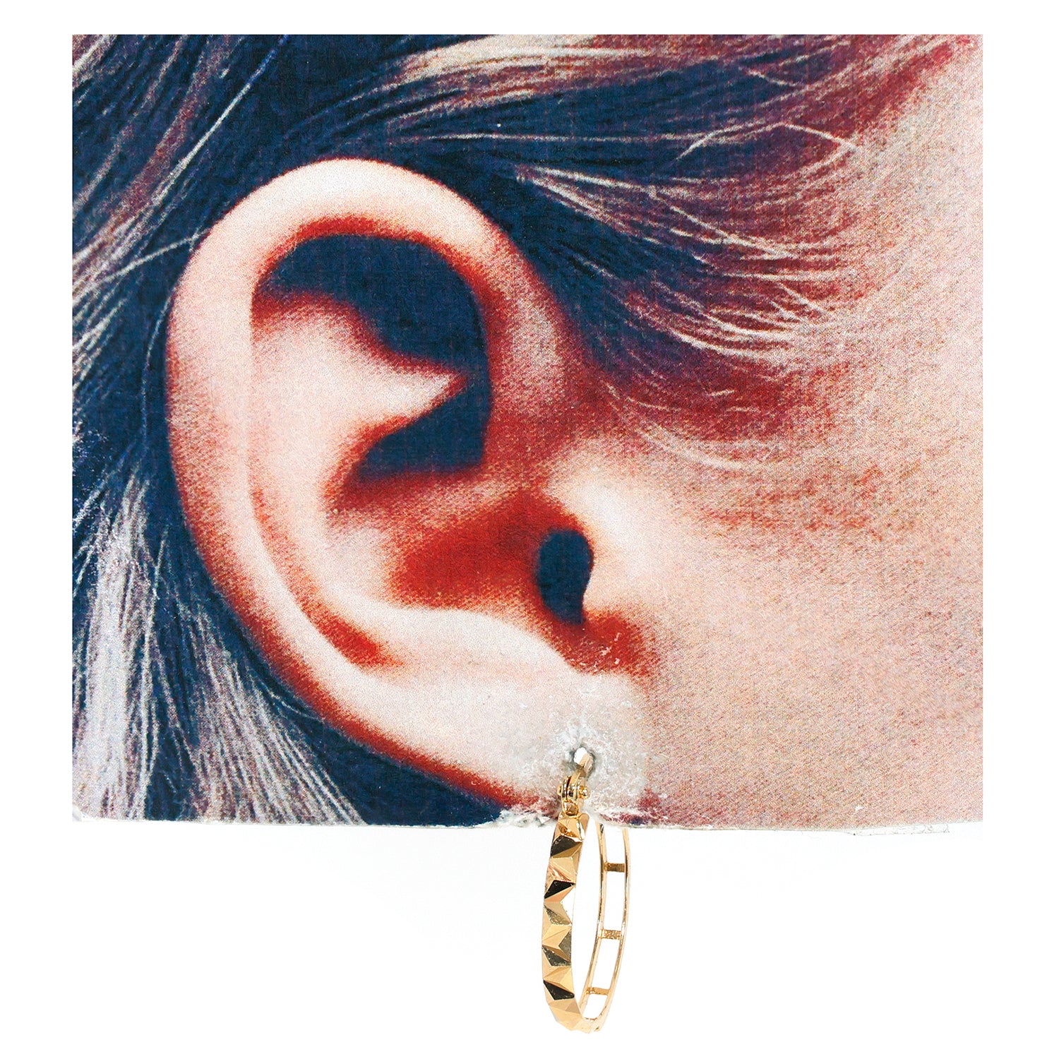 - Distinctive design highlight: geometric hoop with faceted triangle accents along the band.
