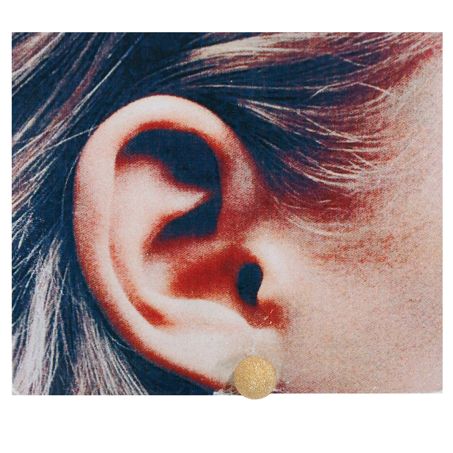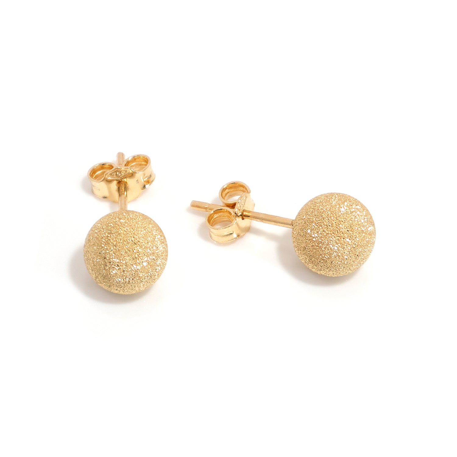 18K Gold Earrings – satin-textured spherical stud finish that sparkles softly