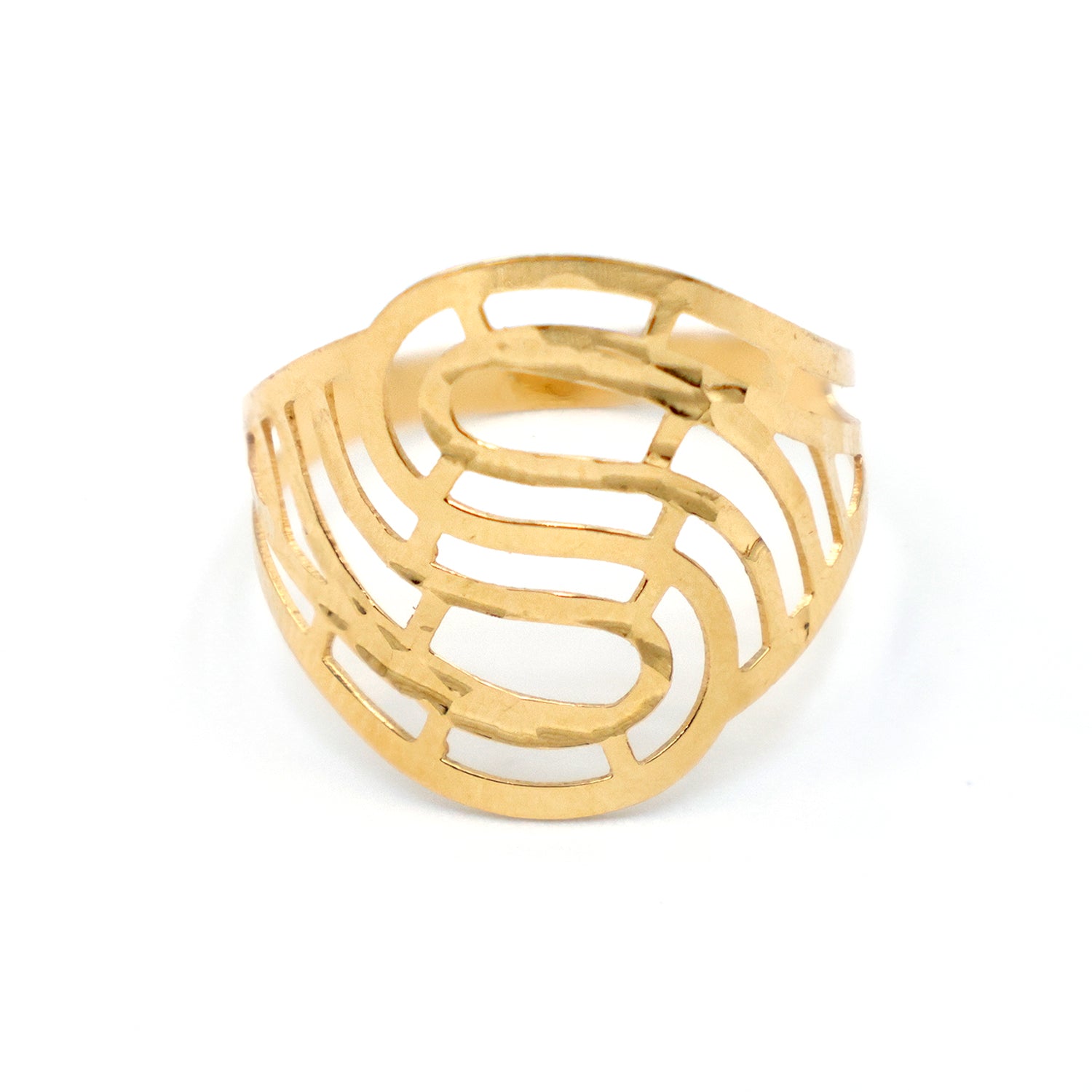 18K Gold Wide Band Ring - Wave Design - Al Fanan