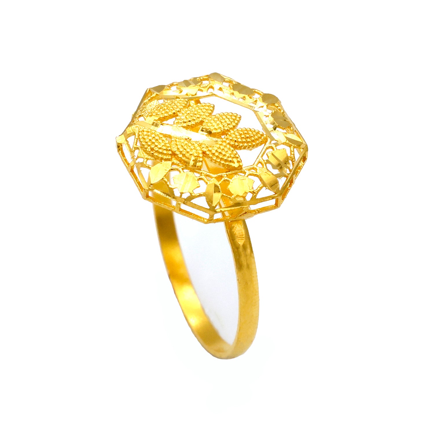 Step into elegance with this 21K Gold Statement Ring, featuring a captivating octagonal butterfly design that blends artistry with sophistication. Expertly handcrafted from pure 21-karat gold, the ring showcases a beautifully detailed butterfly framed within an octagonal border, symbolizing freedom, transformation, and grace. Its intricate openwork and radiant finish make it a true statement piece, perfect for special occasions or elevating your everyday style.