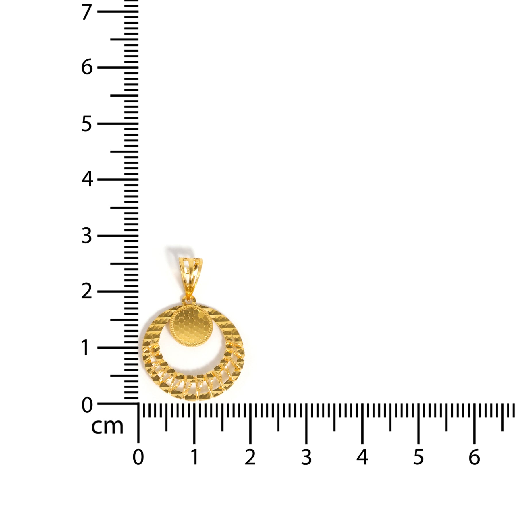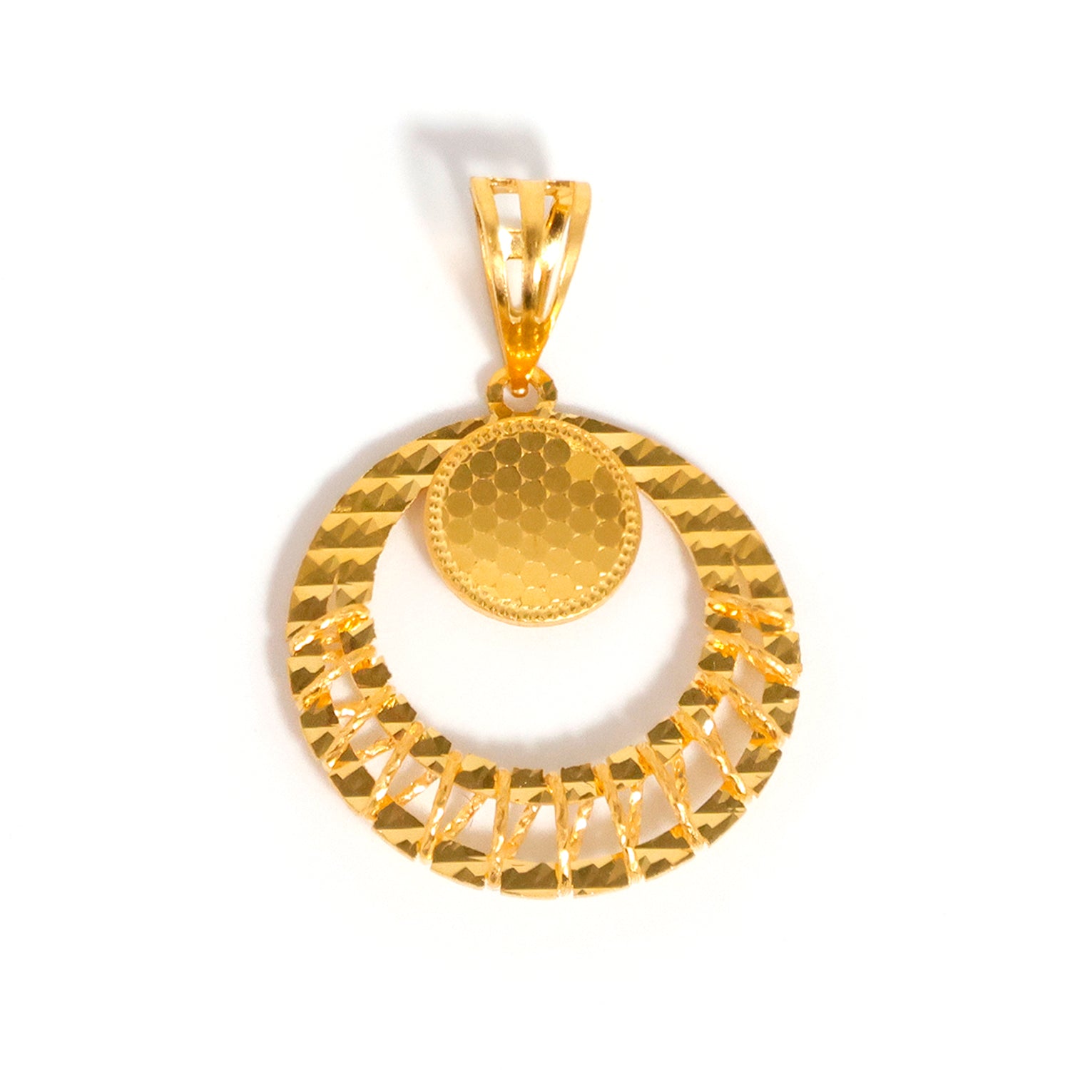 22K Gold Circle Pendant with Diamond-cut Texture & Honeycomb Detail