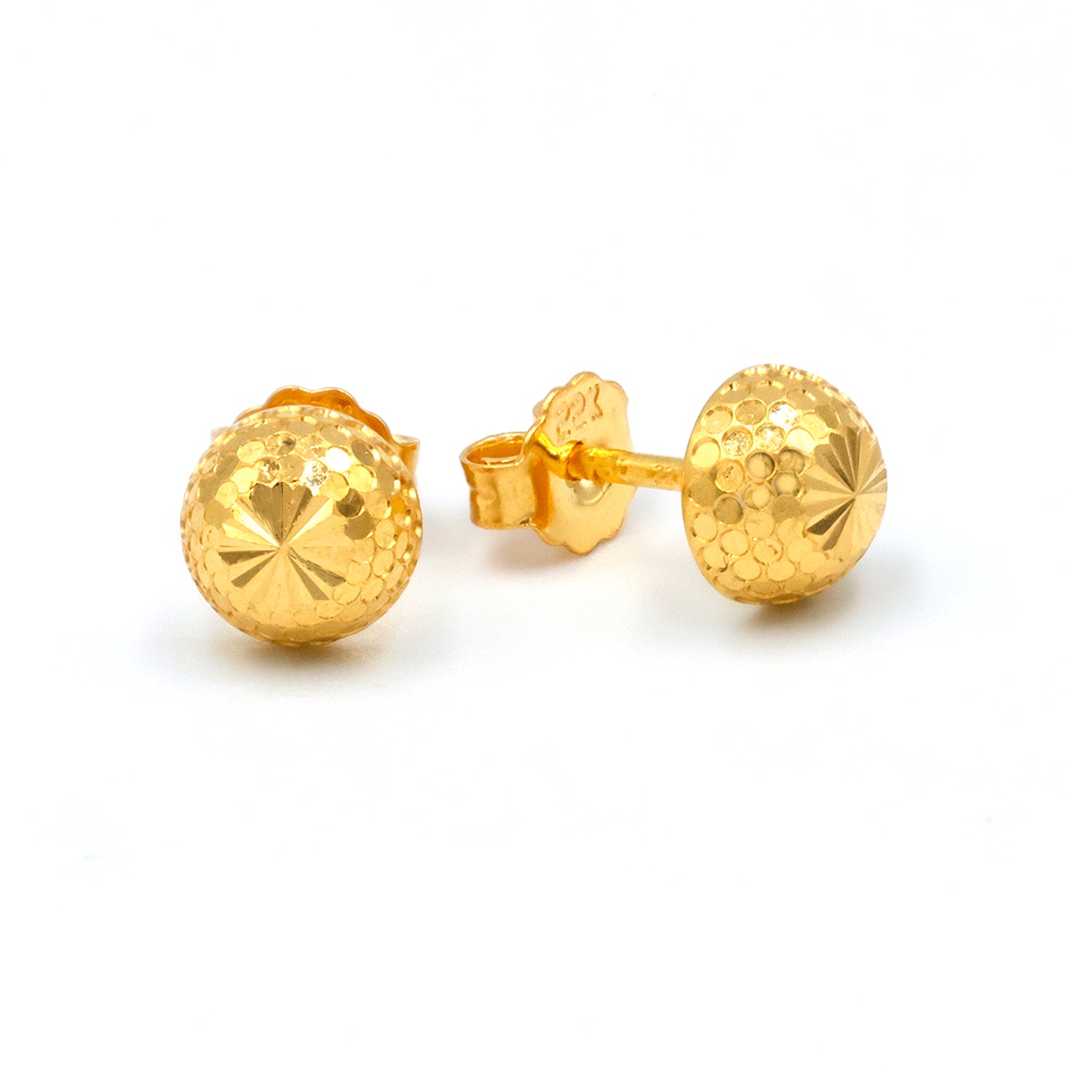 Illuminate your style with these 22K gold earrings, featuring a stunning starburst and honeycomb texture that captures the perfect balance of radiance and refinement. Expertly crafted from pure 22-karat gold, these earrings shimmer with intricate detailing that reflects light beautifully from every angle. Their elegant yet modern design makes them ideal for both everyday wear and special occasions, a true showcase of artistry and luxury.