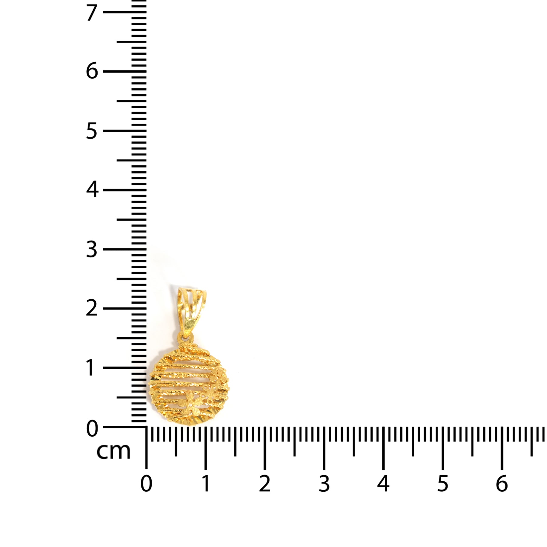22K Gold Pendant – Circular Pendant Accented Fine Floral Motifs - Size Reference