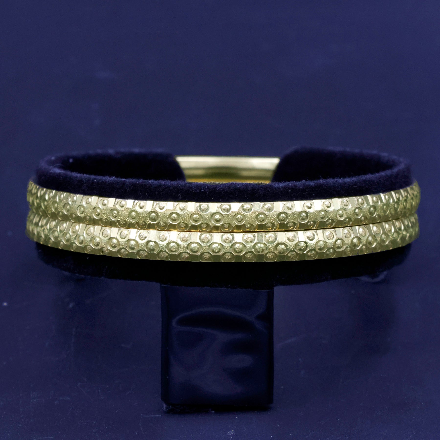 Crafted from 21 karat gold, this bangle offers a deeper, richer yellow tone and is more prestigious than lower-karat alternatives. The polished finish brings out a radiant gleam that complements both casual and formal ensembles. Its substantial weight provides a satisfying feel while maintaining comfort for regular wear.