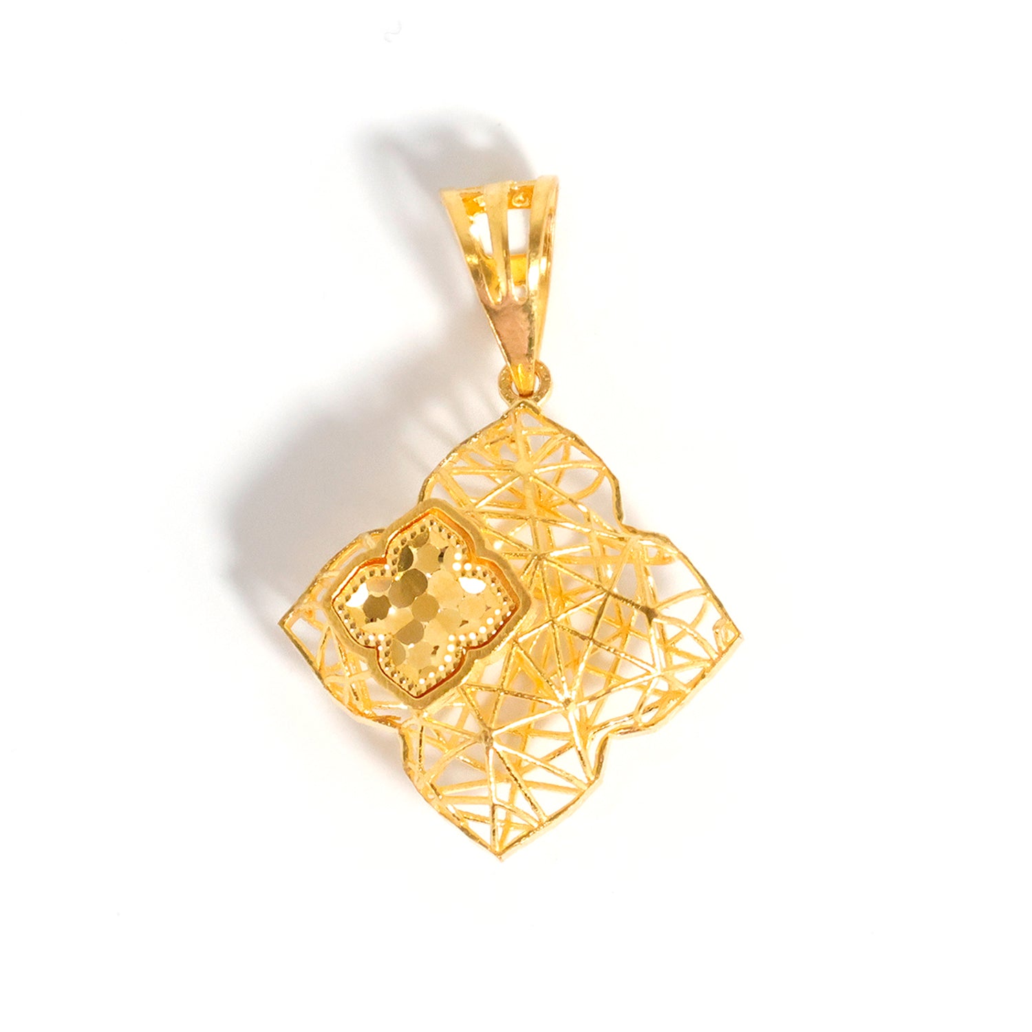 22K Gold Cover Pendant - Modern Geometric Lattice Cutwork - Buy Now