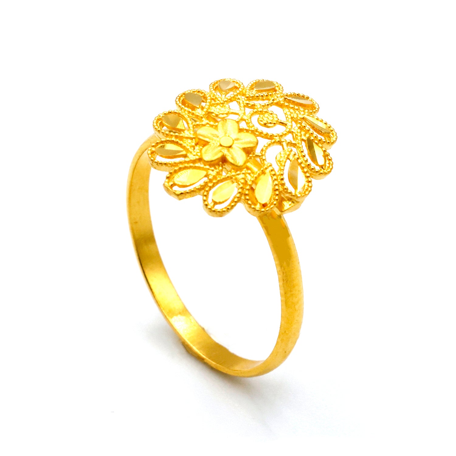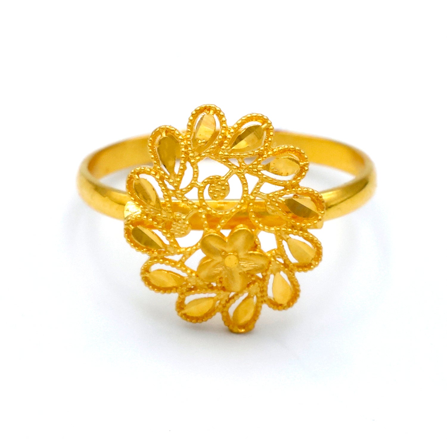 Celebrate everlasting love with this 21K Gold Wedding Ring, featuring a Floral Elegance Design that beautifully symbolizes romance and grace. Handcrafted from luxurious 21-karat gold, the ring showcases intricate floral patterns with delicate openwork detailing,  a perfect harmony of tradition and timeless style. Its radiant finish and refined craftsmanship make it an exquisite choice for weddings, anniversaries, or lifelong commitments.
