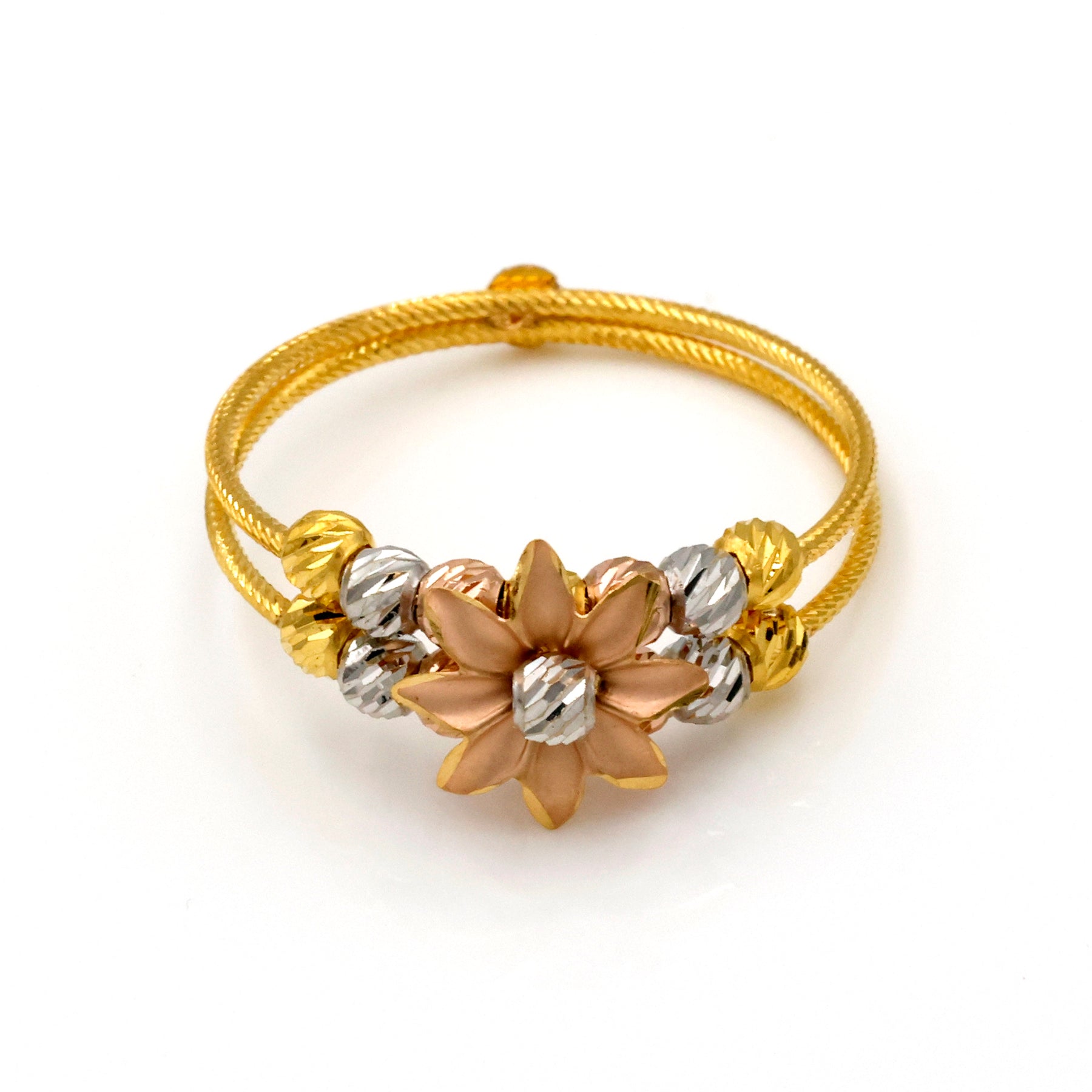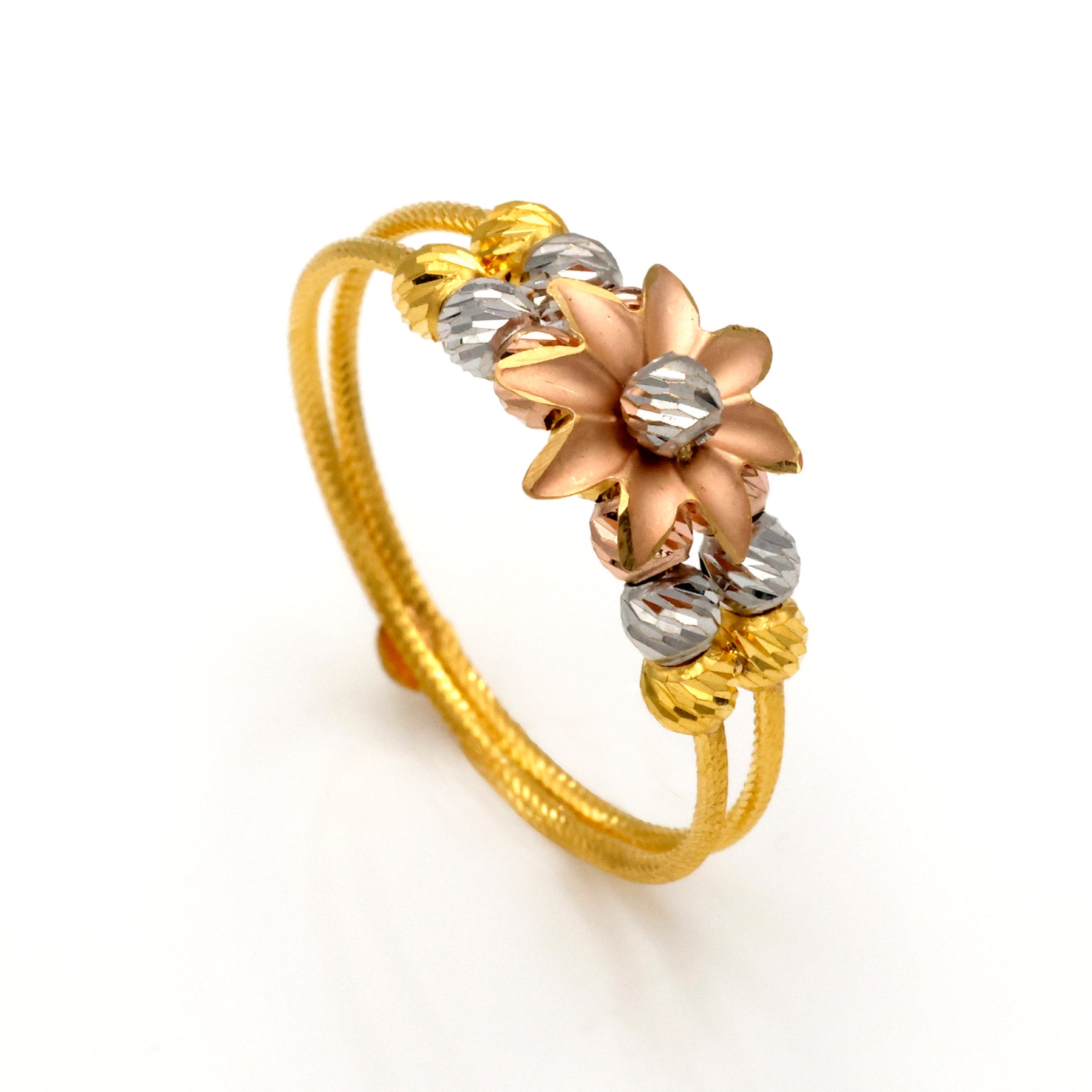 Tri Color Gold Ring 22K - Floral Design | Shop Now Online