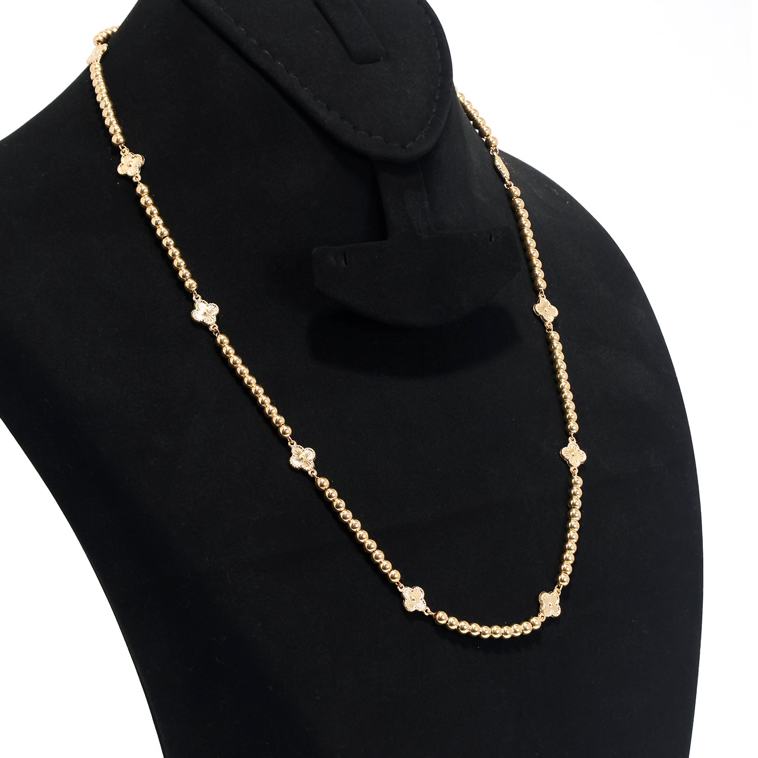 18K Gold Beaded Necklace with Floral Station Design - Zero Making Charge