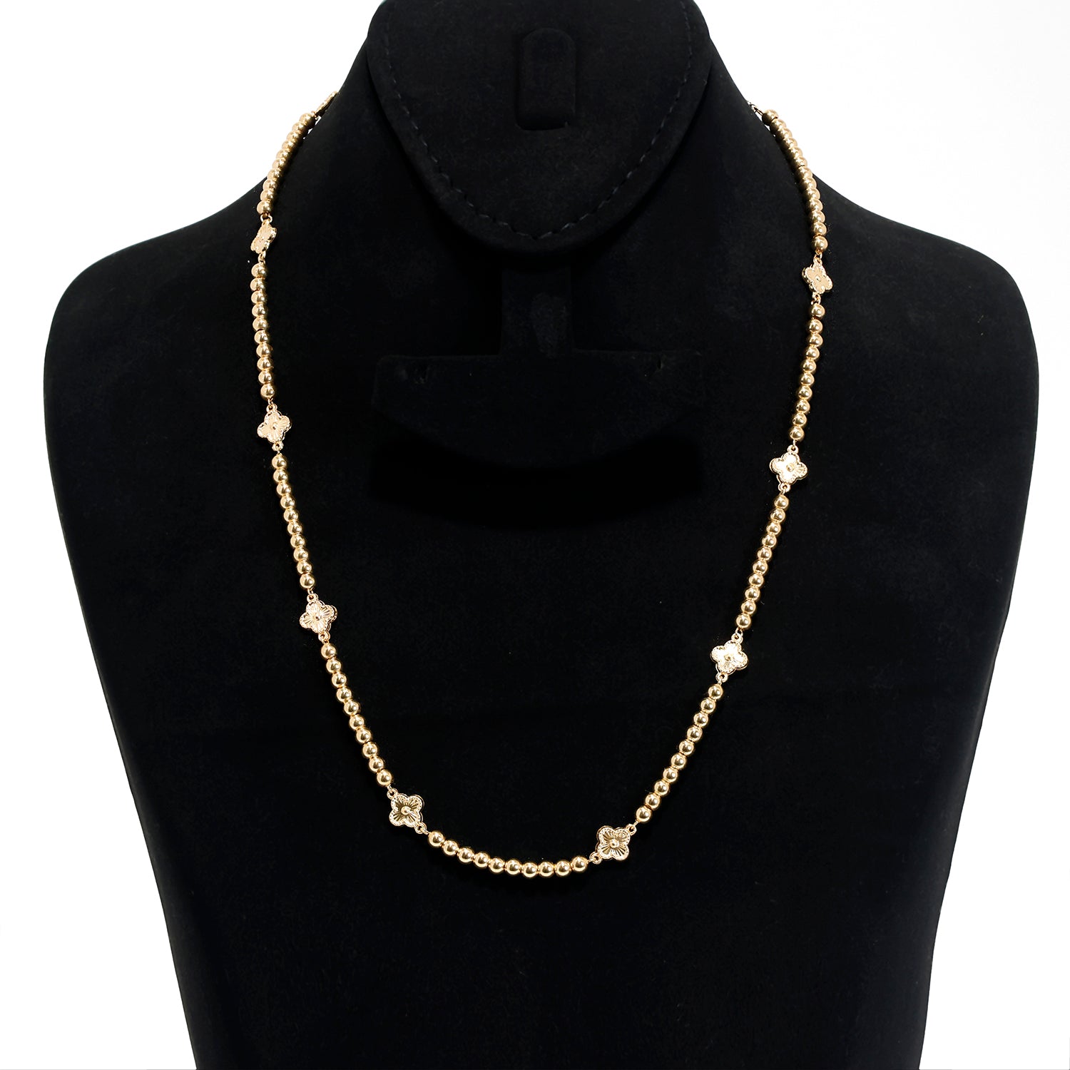 AFN0367018K Gold Beaded Necklace with Floral Station Design - Zero Making Charge