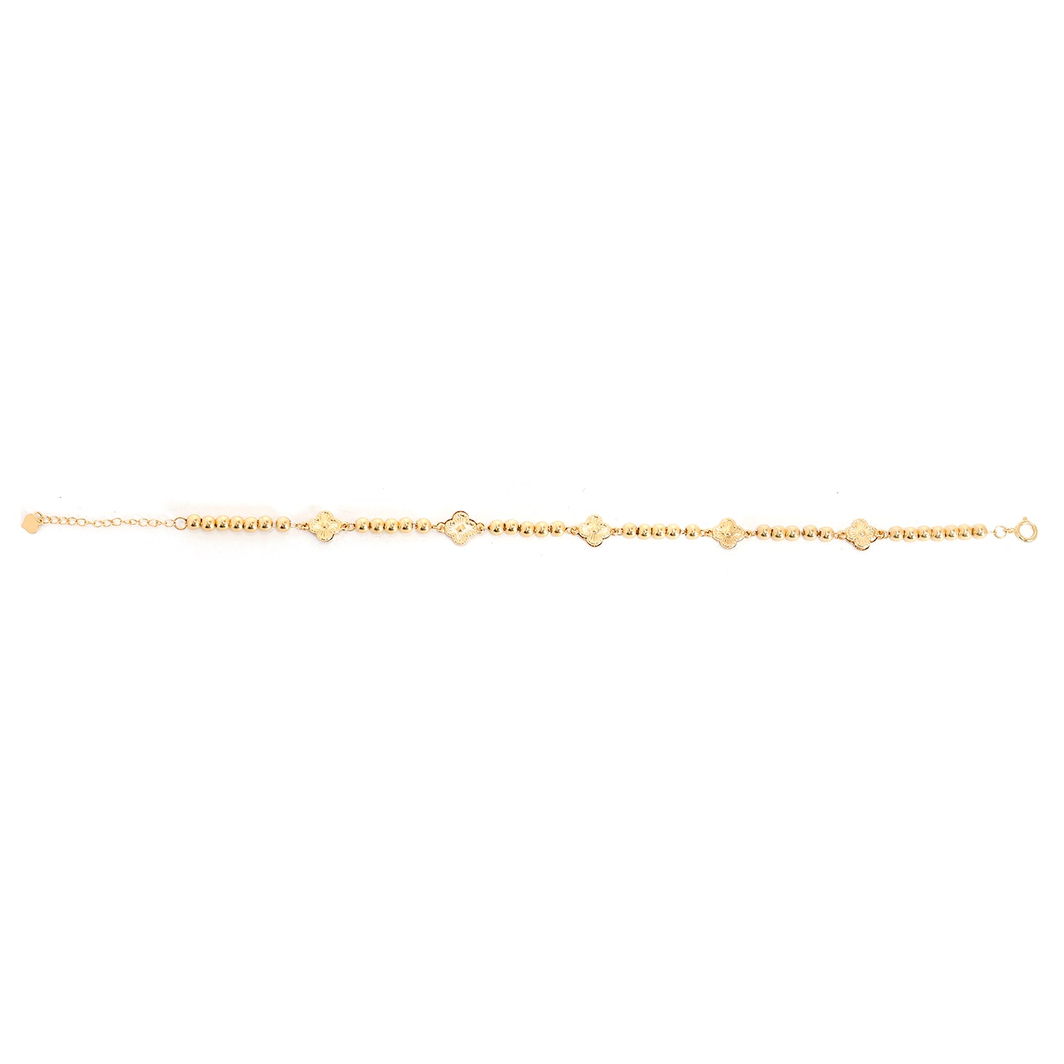18K Gold Bracelet with Delicate Floral Motifs and Polished Gold Beads - Main View