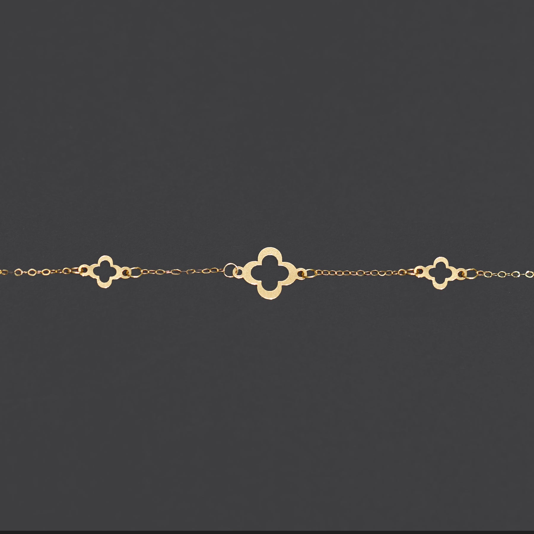 Elevate your everyday elegance with this stunning 18K Gold Clover Bracelet, beautifully crafted to bring sophistication and modern charm to any look. Featuring delicate clover-shaped motifs linked by a fine gold chain, this bracelet embodies grace, minimalism, and timeless style.