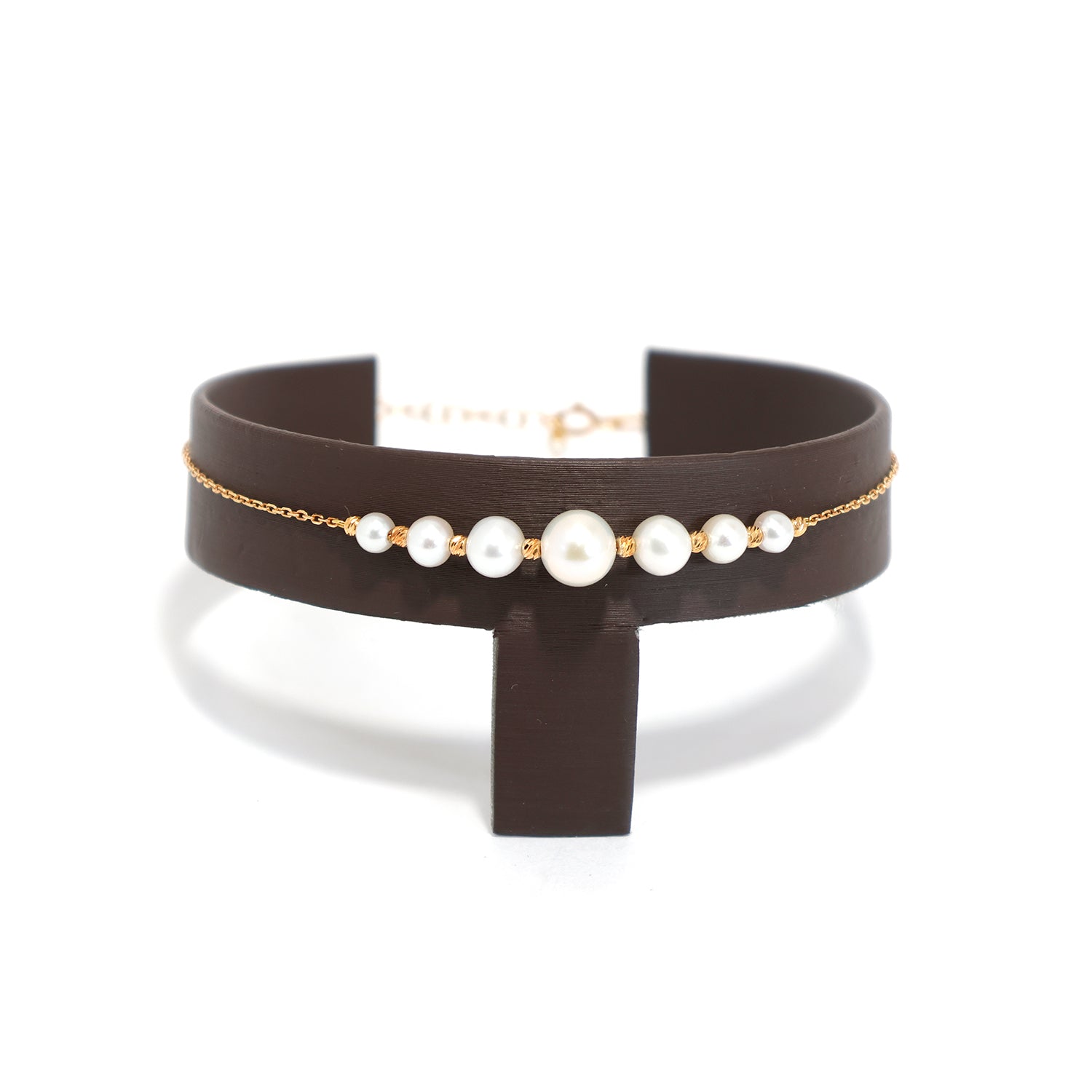 This elegant 18K gold bracelet featuring lustrous pearl accents and a delicate chain design. Perfect for daily wear or gifting.