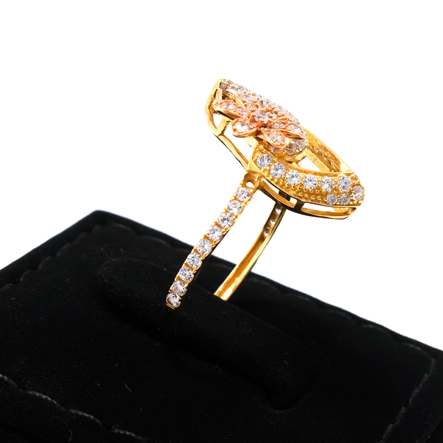 18K Gold Ring – Floral Swirl Pavé Accent – Zero Making Charge