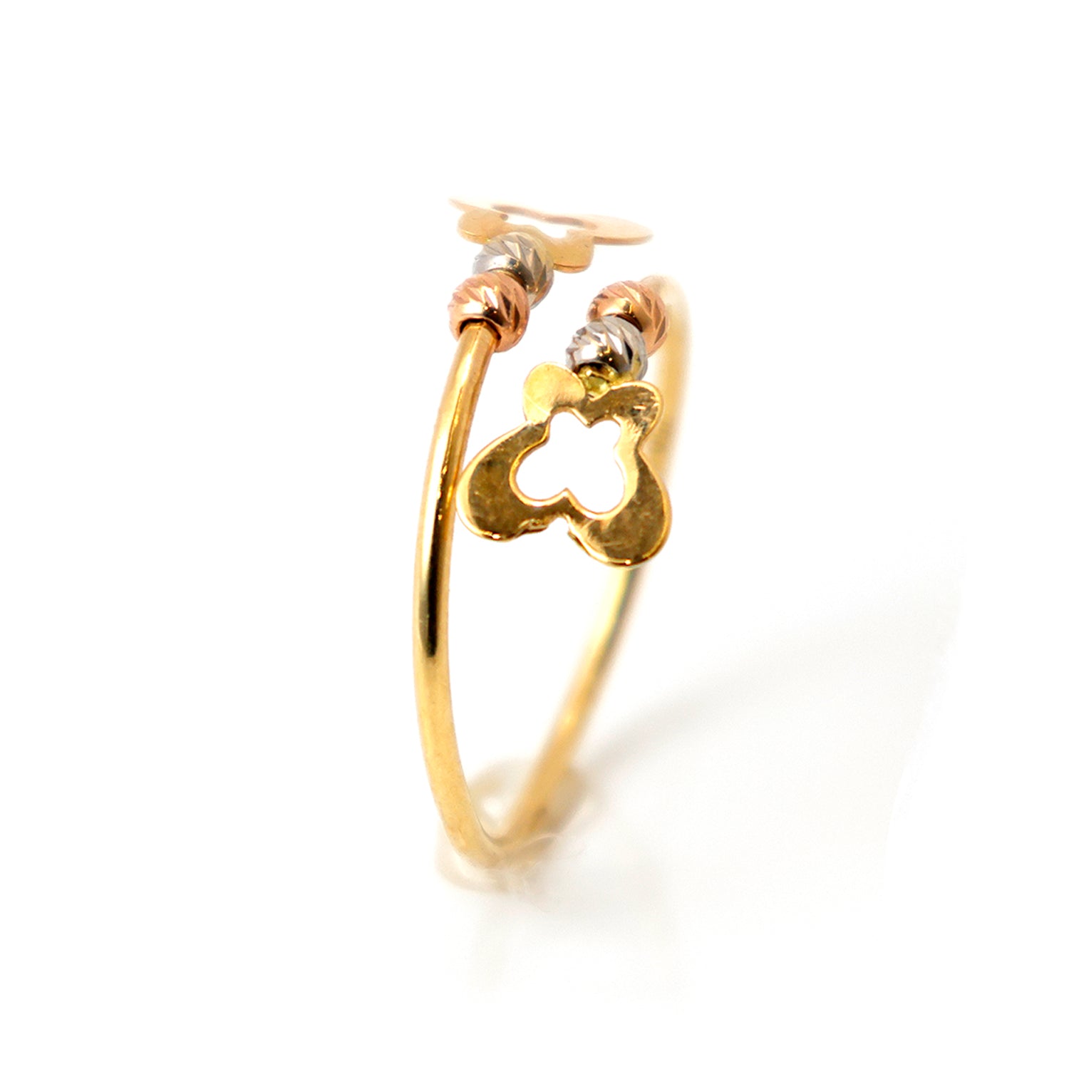 AFR0379318K Gold Ring – Open Clover & Bead Detail – Zero Making Charge