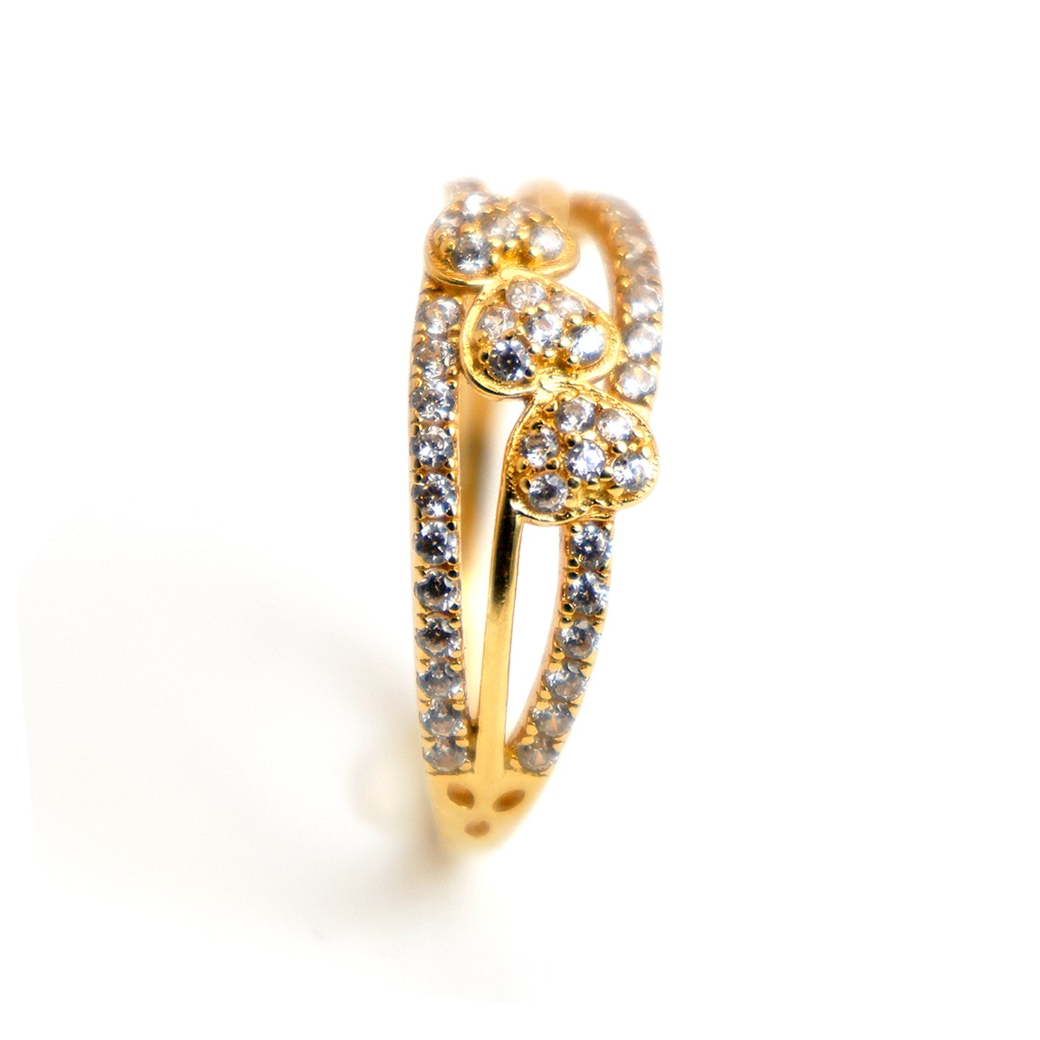 18K Gold Ring – Triple Heart Motif Sparkle – Zero Making Charge
