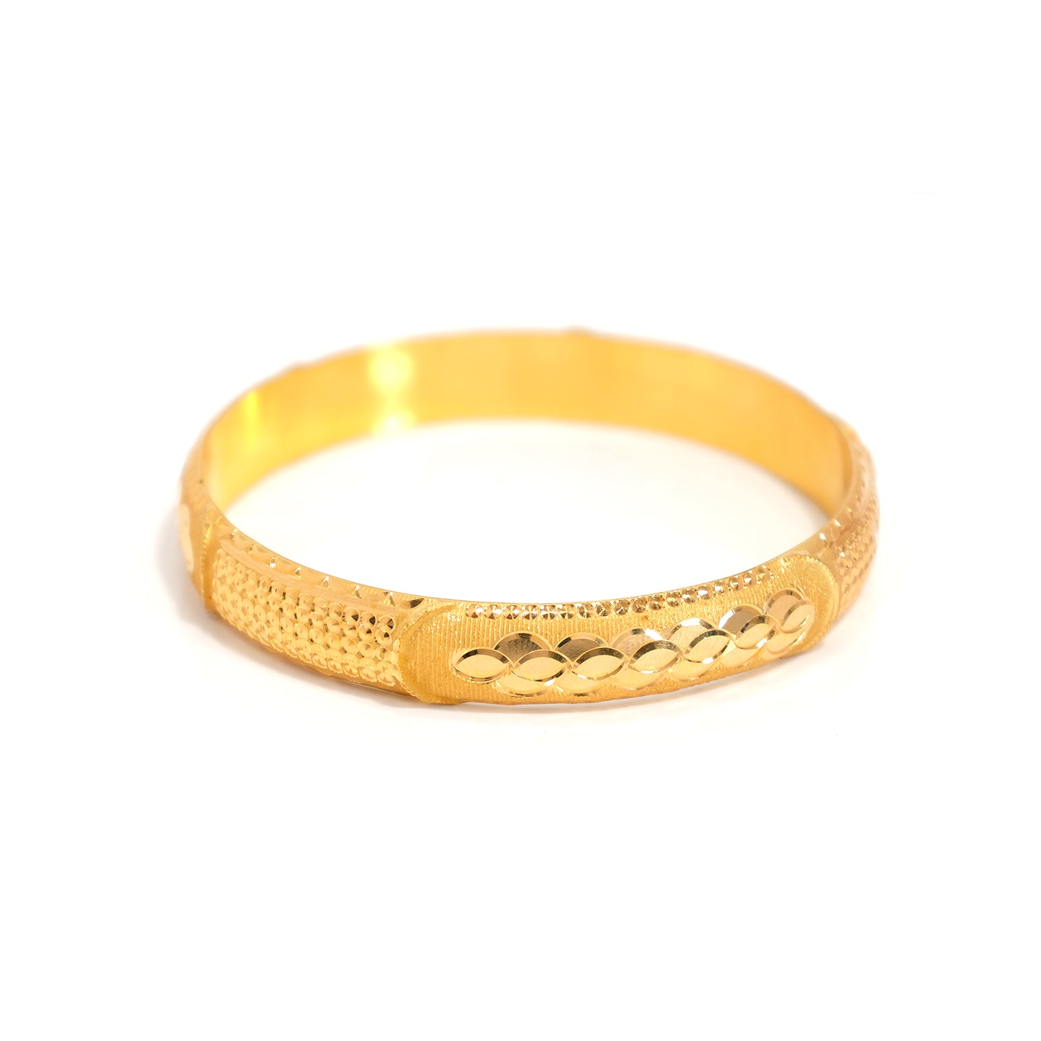 21K Gold Bangle with Diamond-cut Texture and Floral Motif - Zero Making Charge