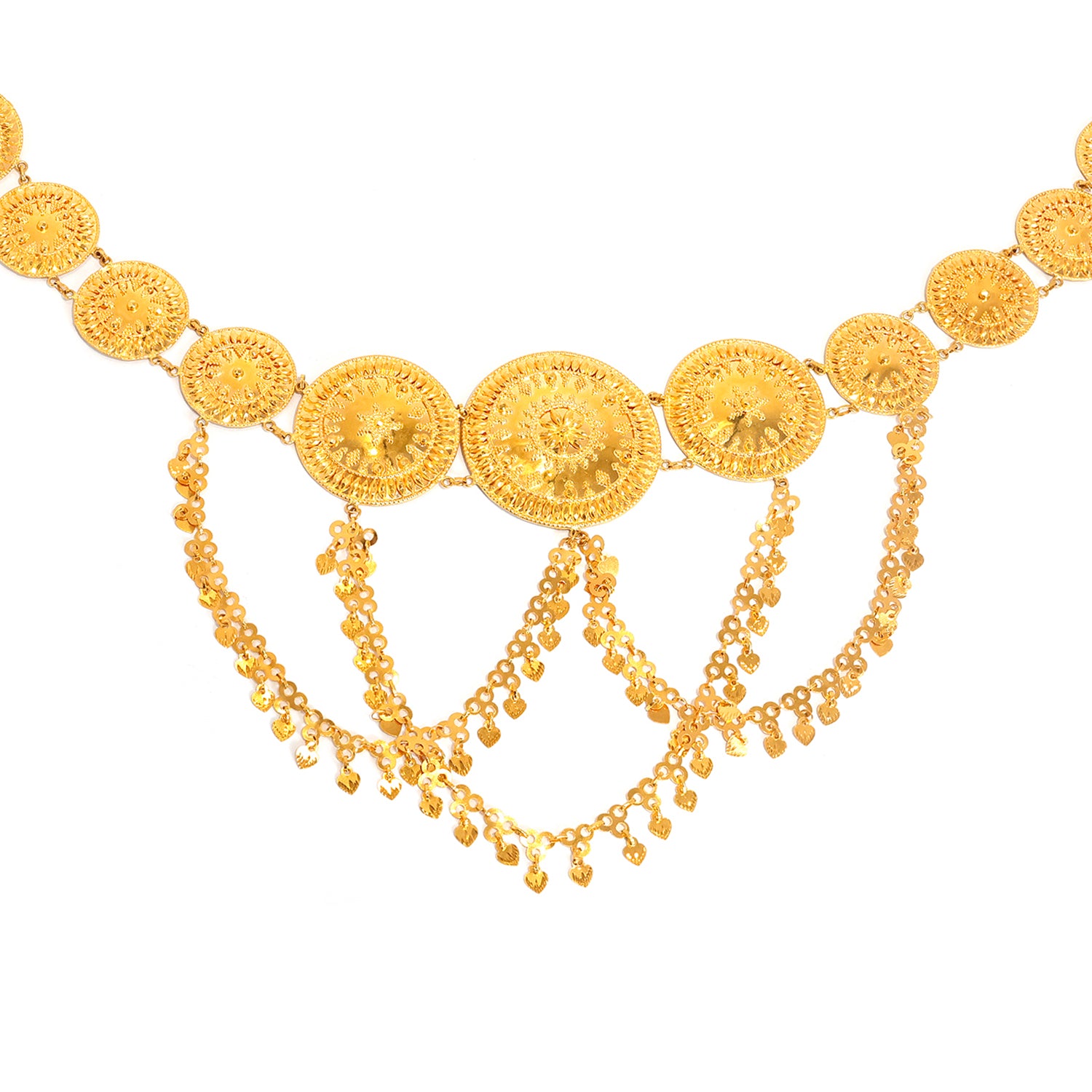 Adorn your look with the timeless beauty of this 21K Gold Belt, handcrafted in a traditional waist chain design. A symbol of elegance and heritage, this piece highlights fine detailing with graceful links that rest beautifully around the waist. Perfect for weddings, festive occasions, and cultural celebrations, the radiant 21K gold finish adds a luxurious glow that enhances any traditional attire.