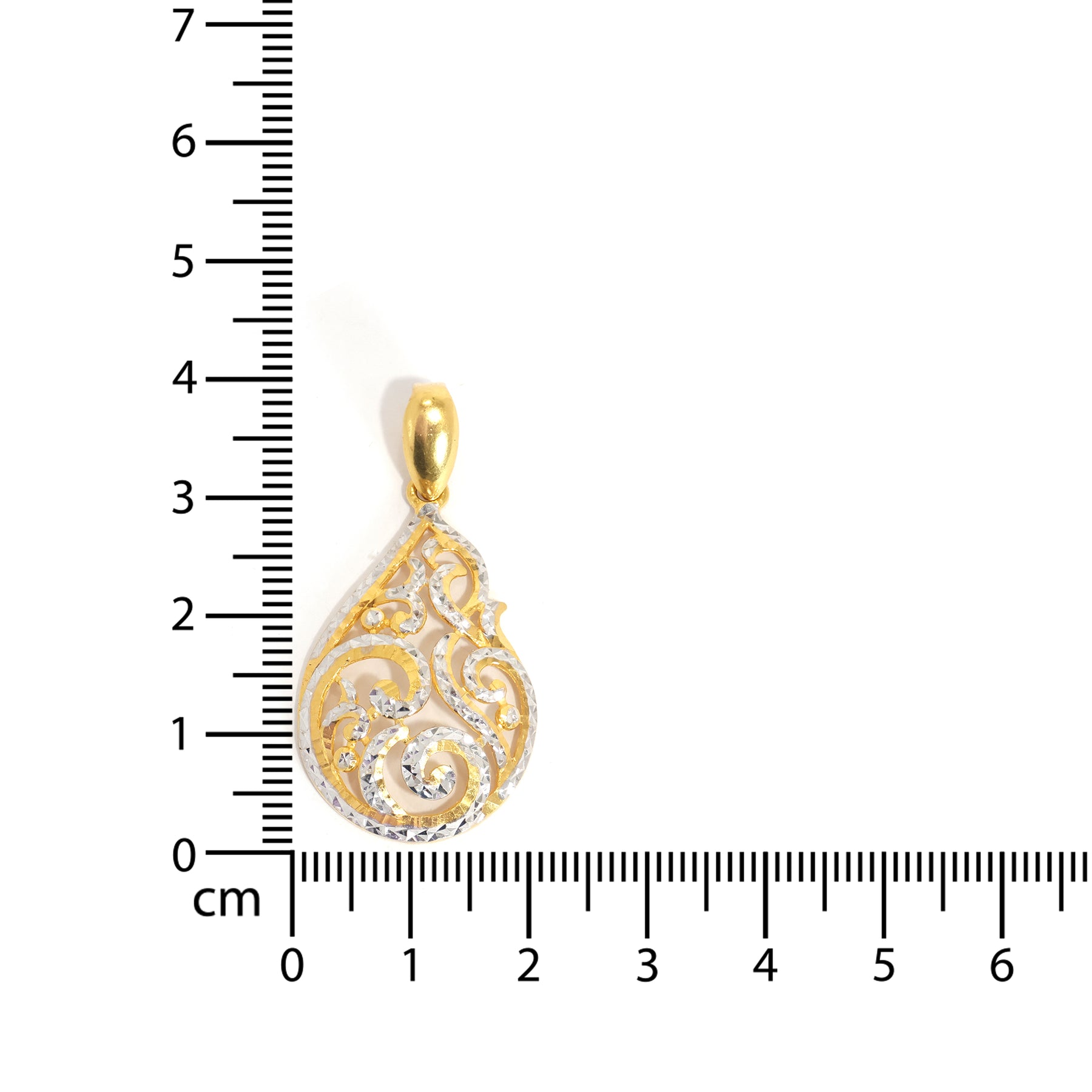 22K Filigree Gold Pendant - Two Tone Design - Zero Making Charge - Size Reference