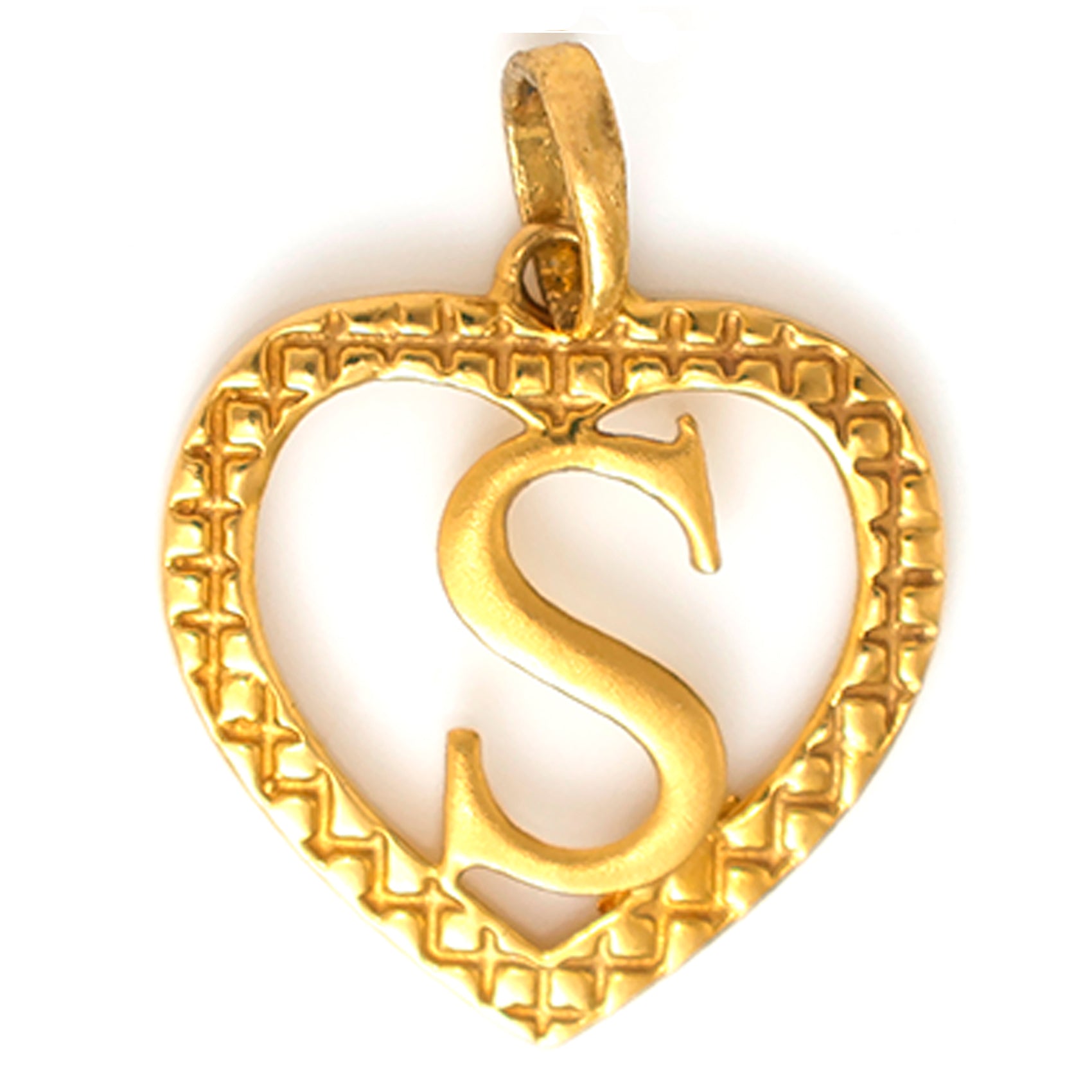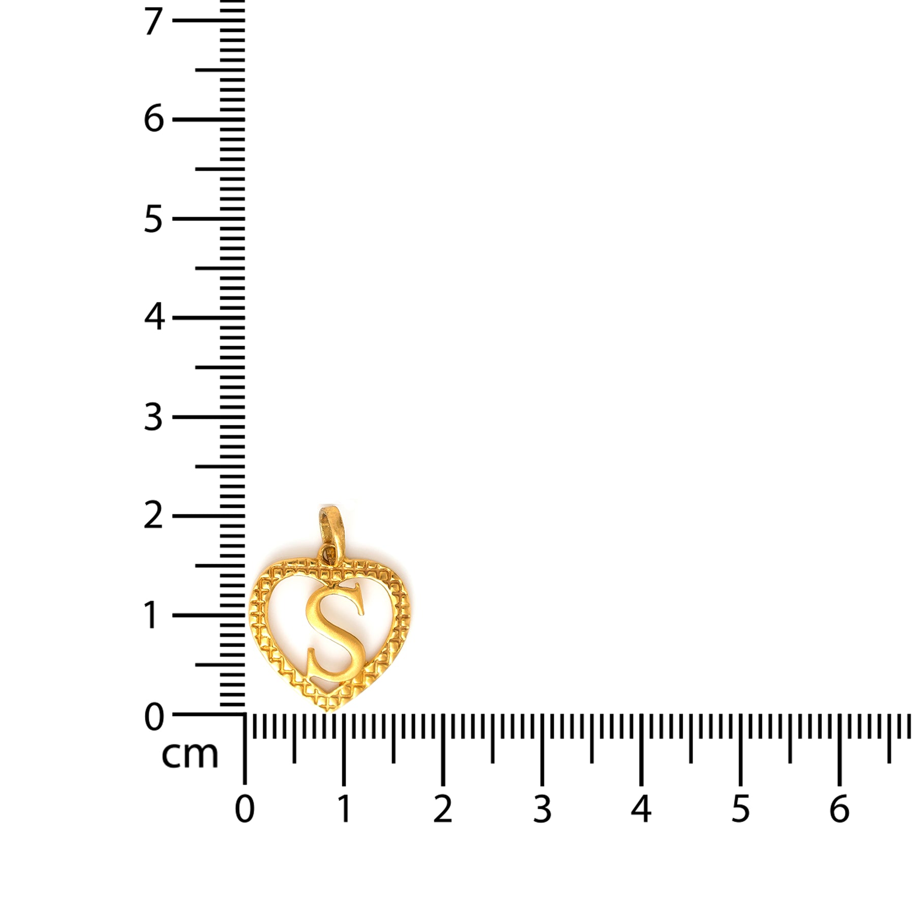 22K Gold Pendant – Heart Frame Initial S – Zero Making Charge