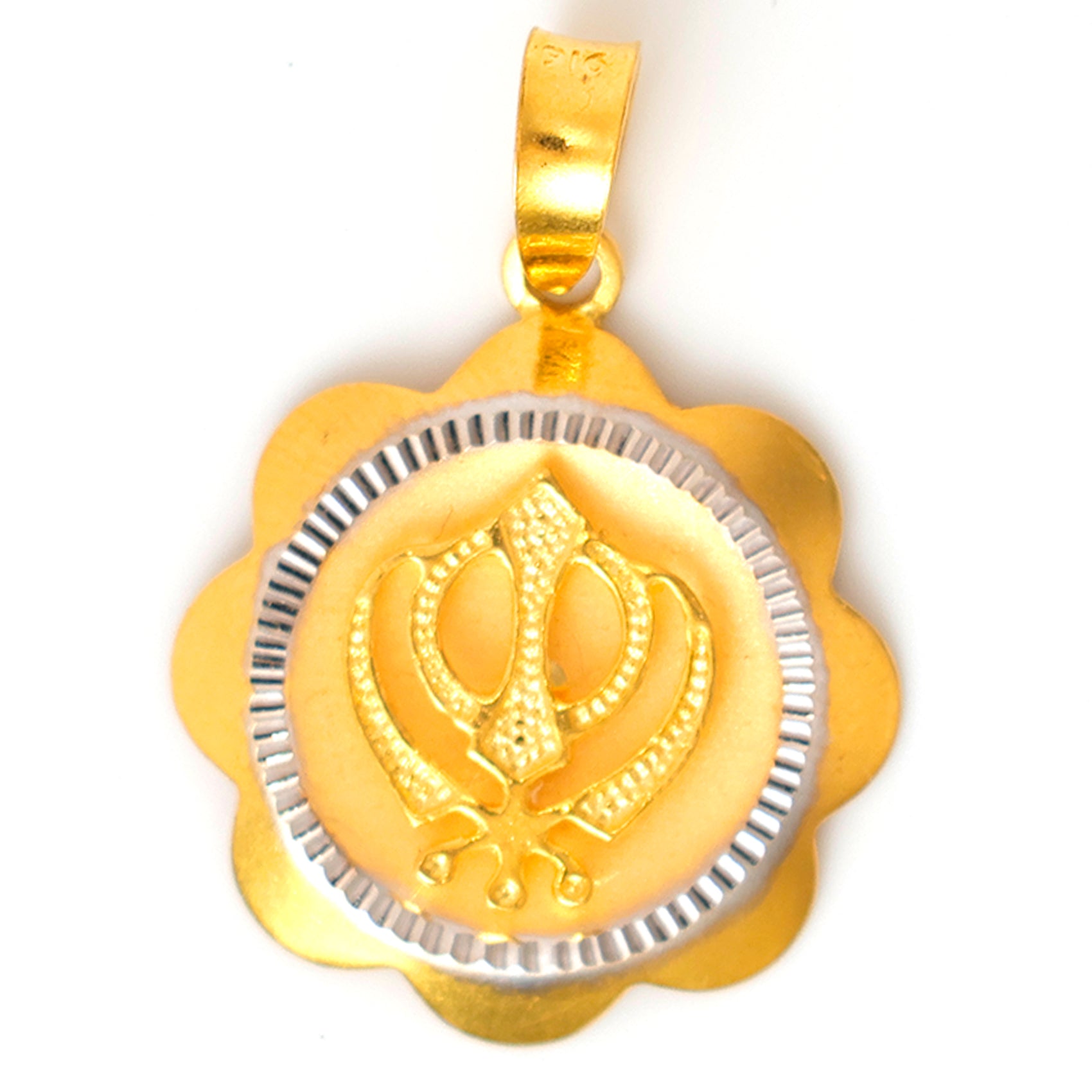 BG8000349422K Gold Pendant – Khanda Two-Tone Scalloped Medallion – Zero Making Charge