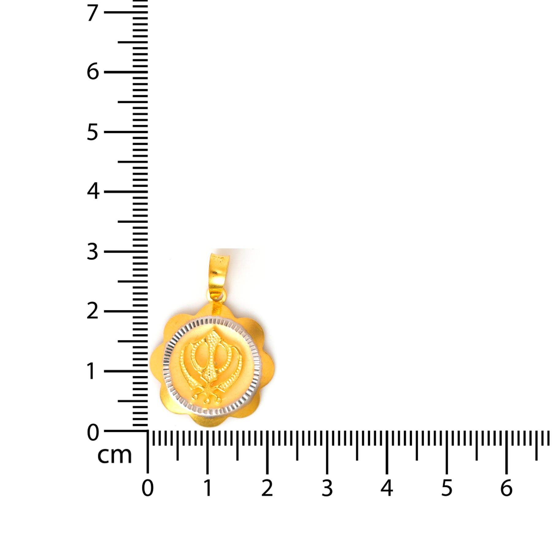 22K Gold Pendant – Khanda Two-Tone Scalloped Medallion – Zero Making Charge