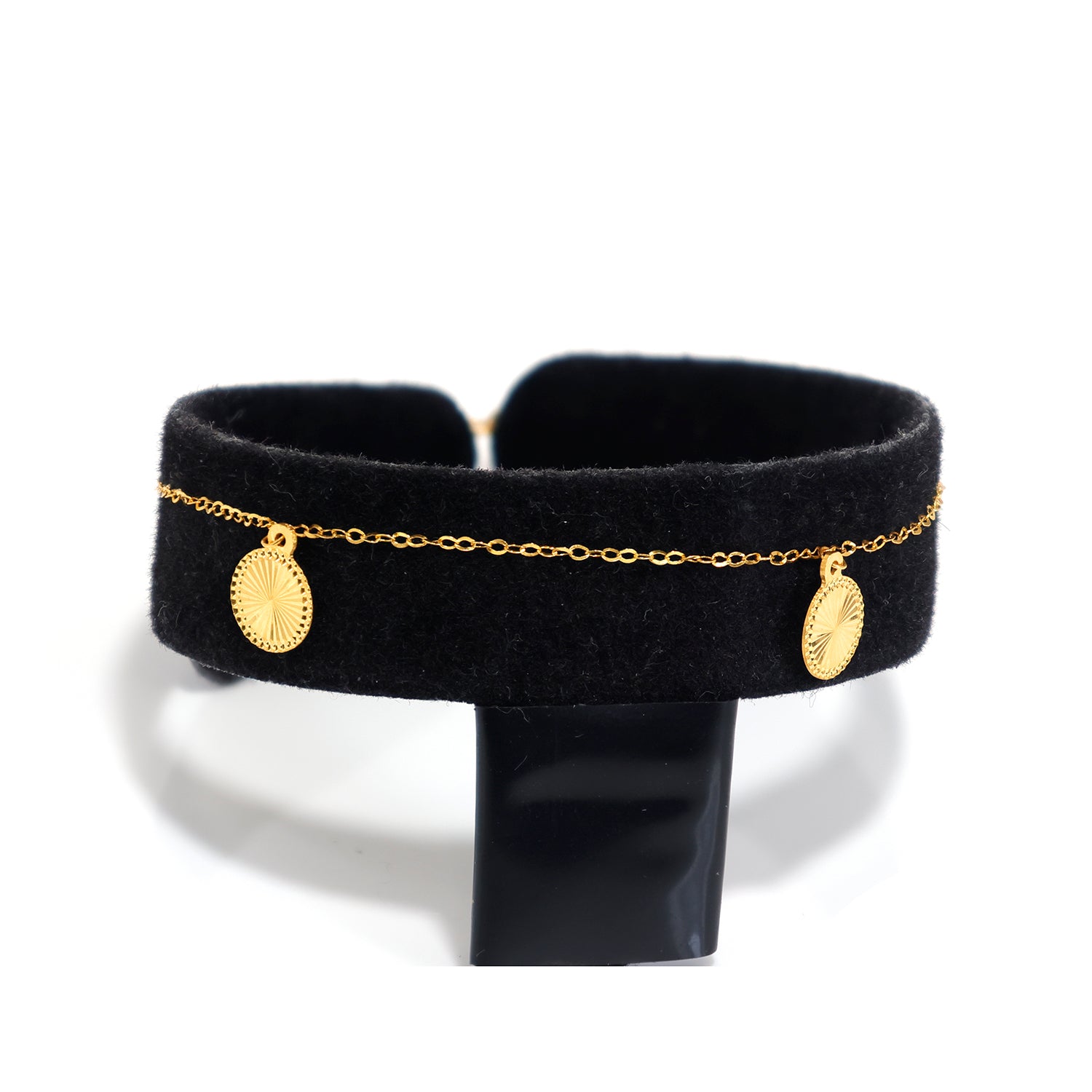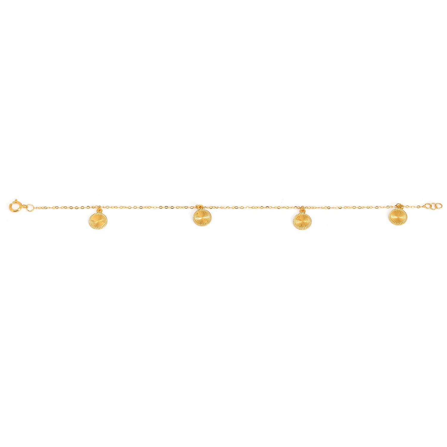 Graceful 21K gold bracelet featuring delicate round coin charms on a fine chain. Lightweight, elegant, and perfect for everyday wear or gifting.