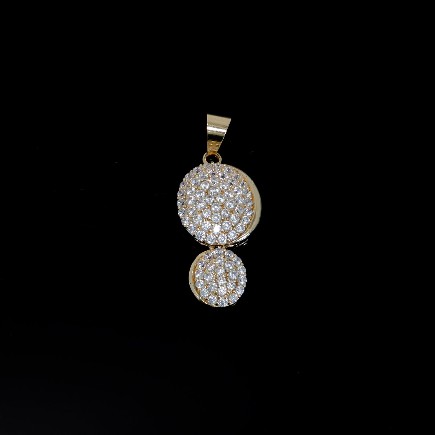 Elegant 18K gold double circle pendant set with sparkling cubic zirconia. A refined everyday piece perfect for gifting or personal wear.