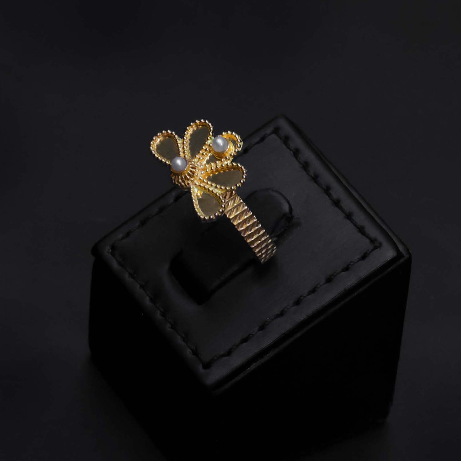 21K Gold Ring Pearl Accent Butterfly Design - Zero Making Charge - Al Fanan